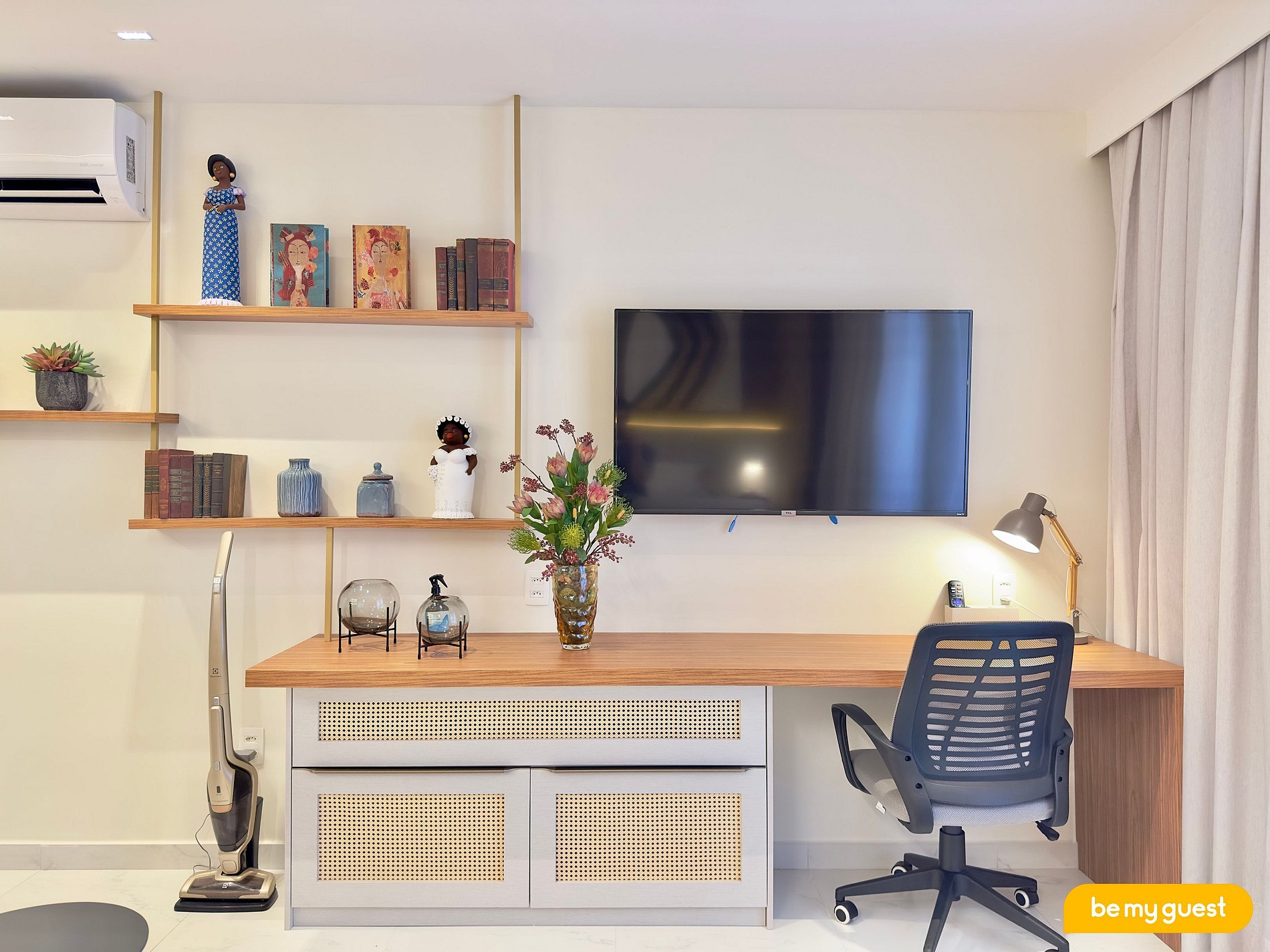 - Sala de Estar toda planejada e decorada, com sofá super confortável, TV Smart e ar-condicionado