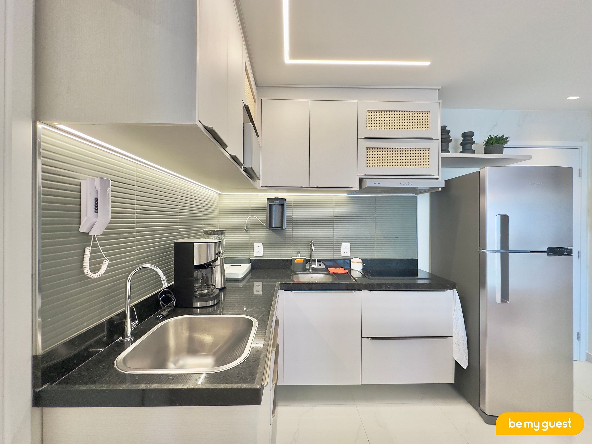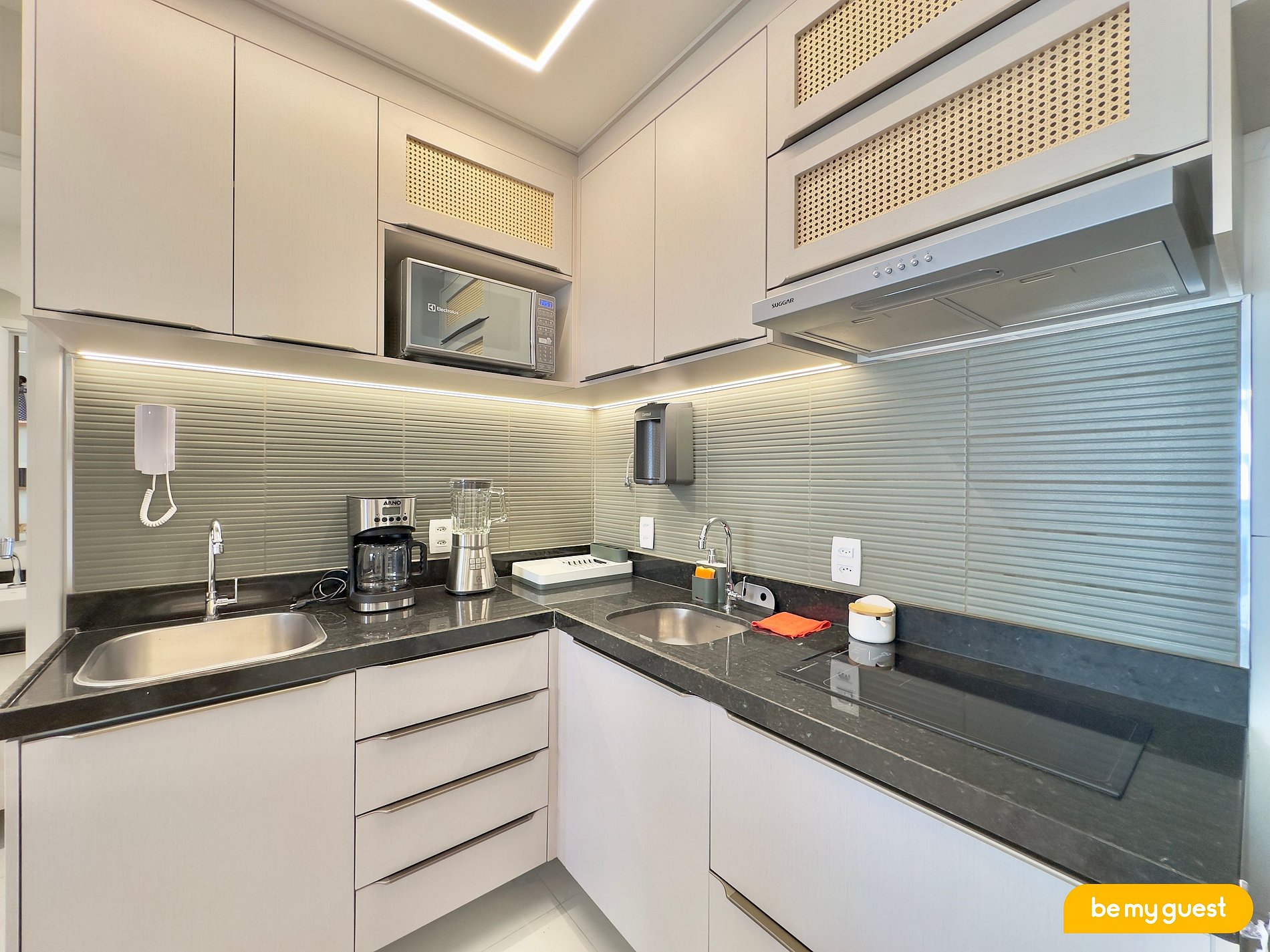 - Cozinha moderna com todos os itens essenciais e integrada com a sala