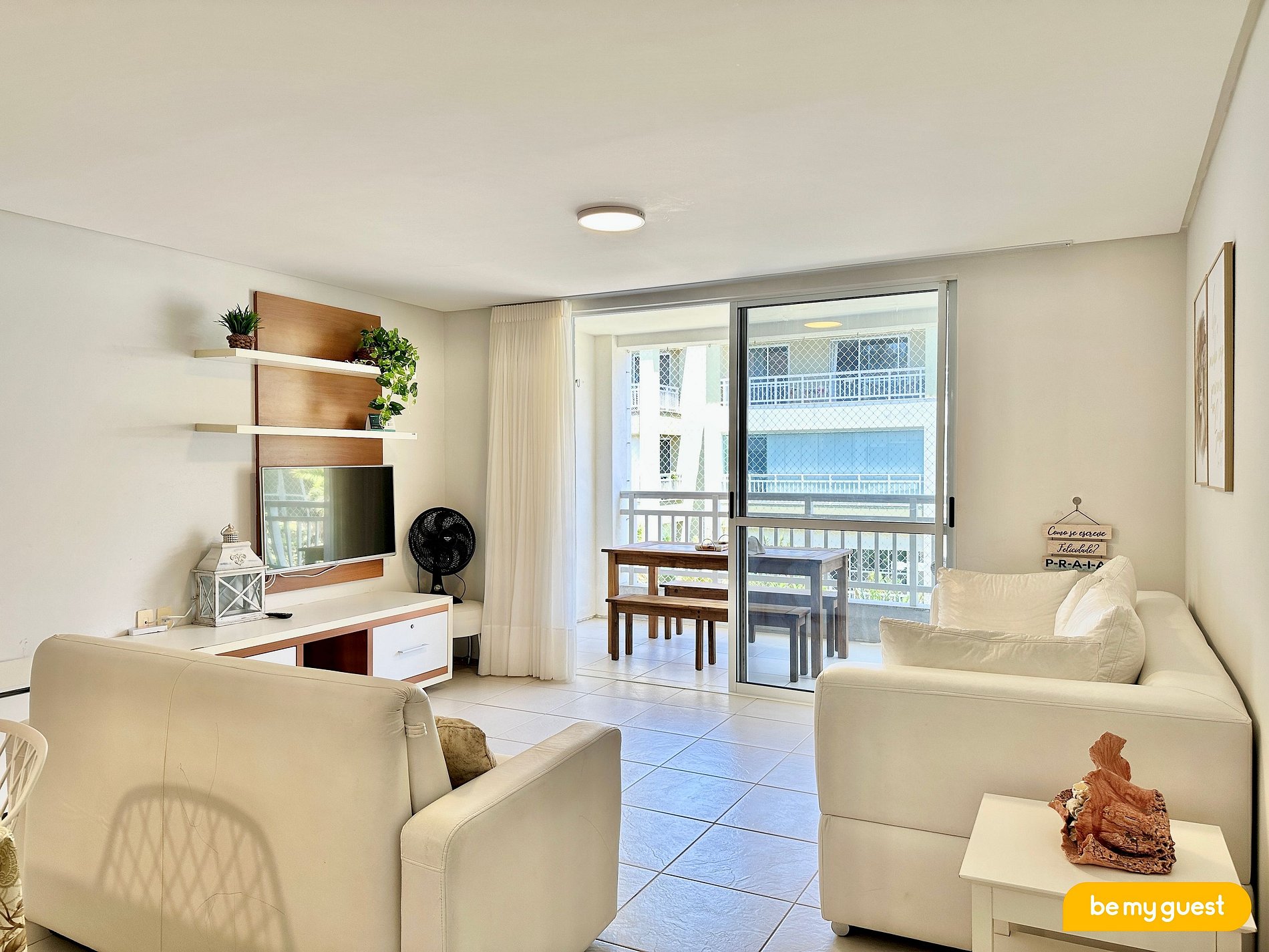 Apartamento decorado e espaçoso no Porto das Dunas, com varanda frente mar, 2 quartos, sala ampla e estrutura completa de condomínio pé na areia ao lado do Beach Park.