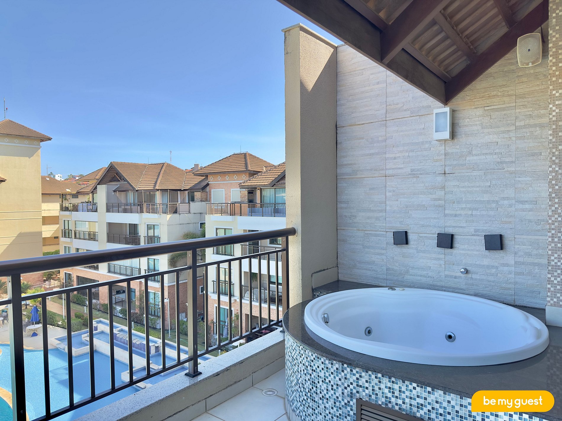 A melhor cobertura do Mediterranée Residence espera por você no Porto das Dunas! Duplex, ampla e totalmente climatizada, essa acomodação une sofisticação, lazer e conforto, com banheira privativa, churrasqueira e uma vista privilegiada da piscina.