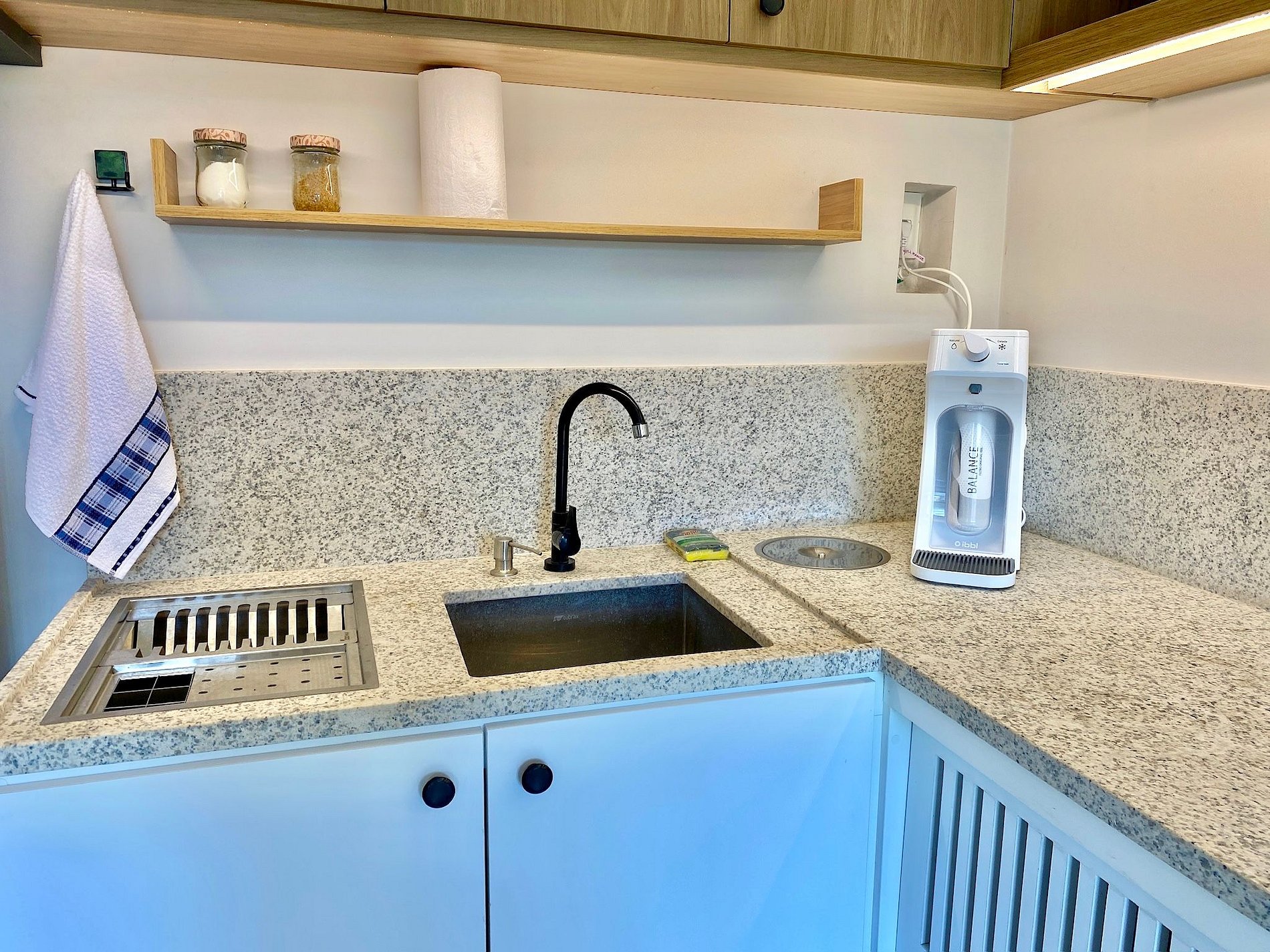 - Cozinha moderna conectada a sala de estar e com todos os itens essenciais