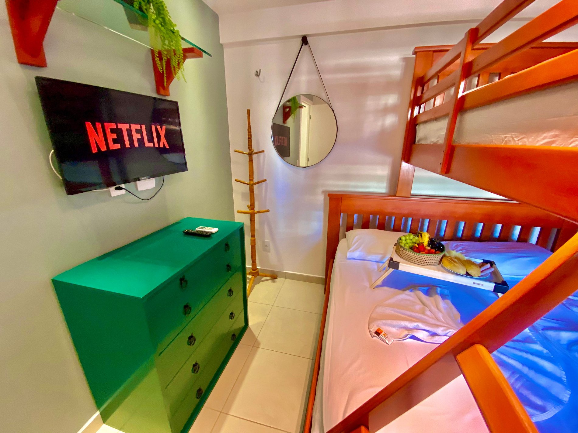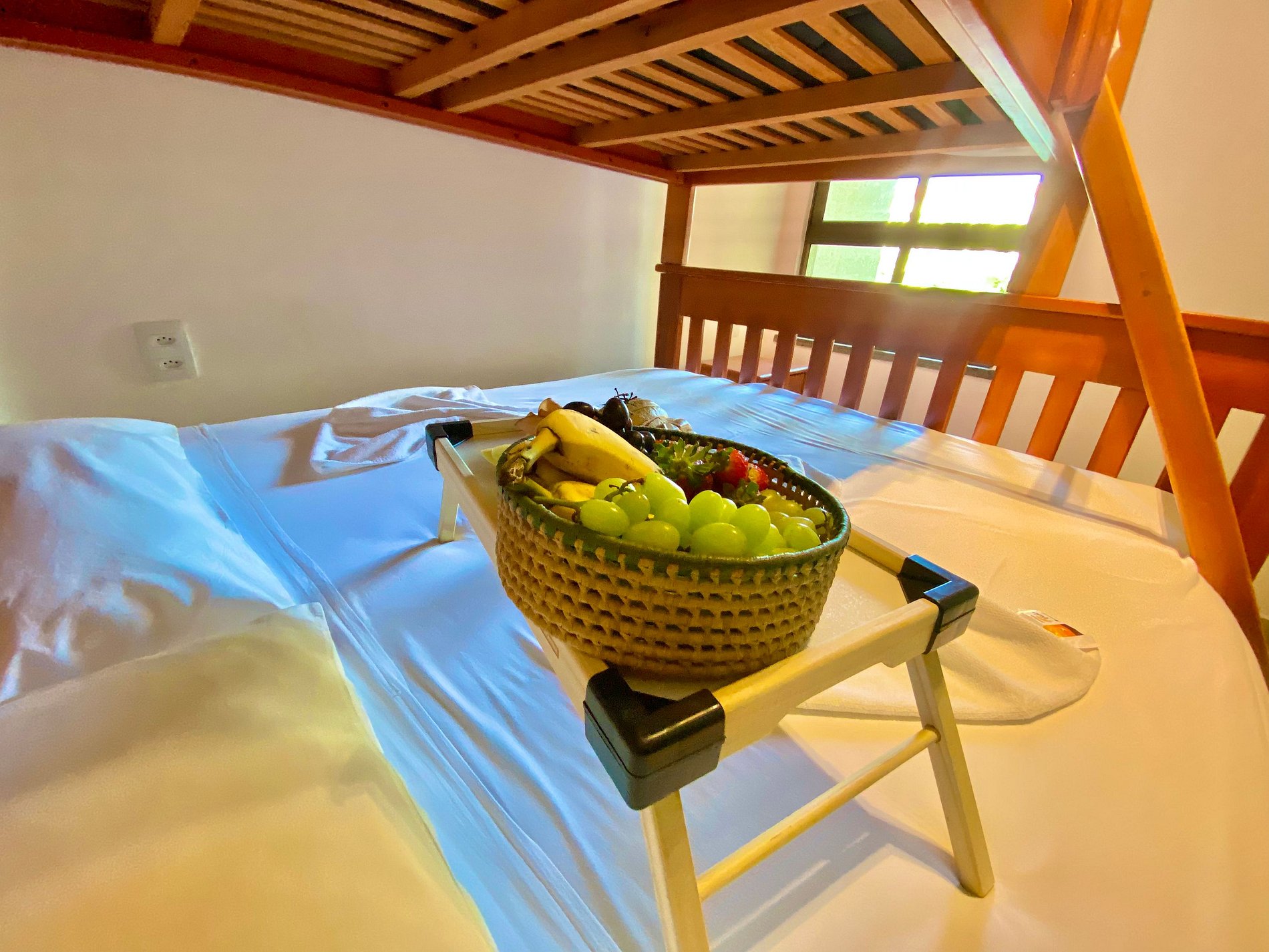 - Quarto com cama queen e cama de solteiro;