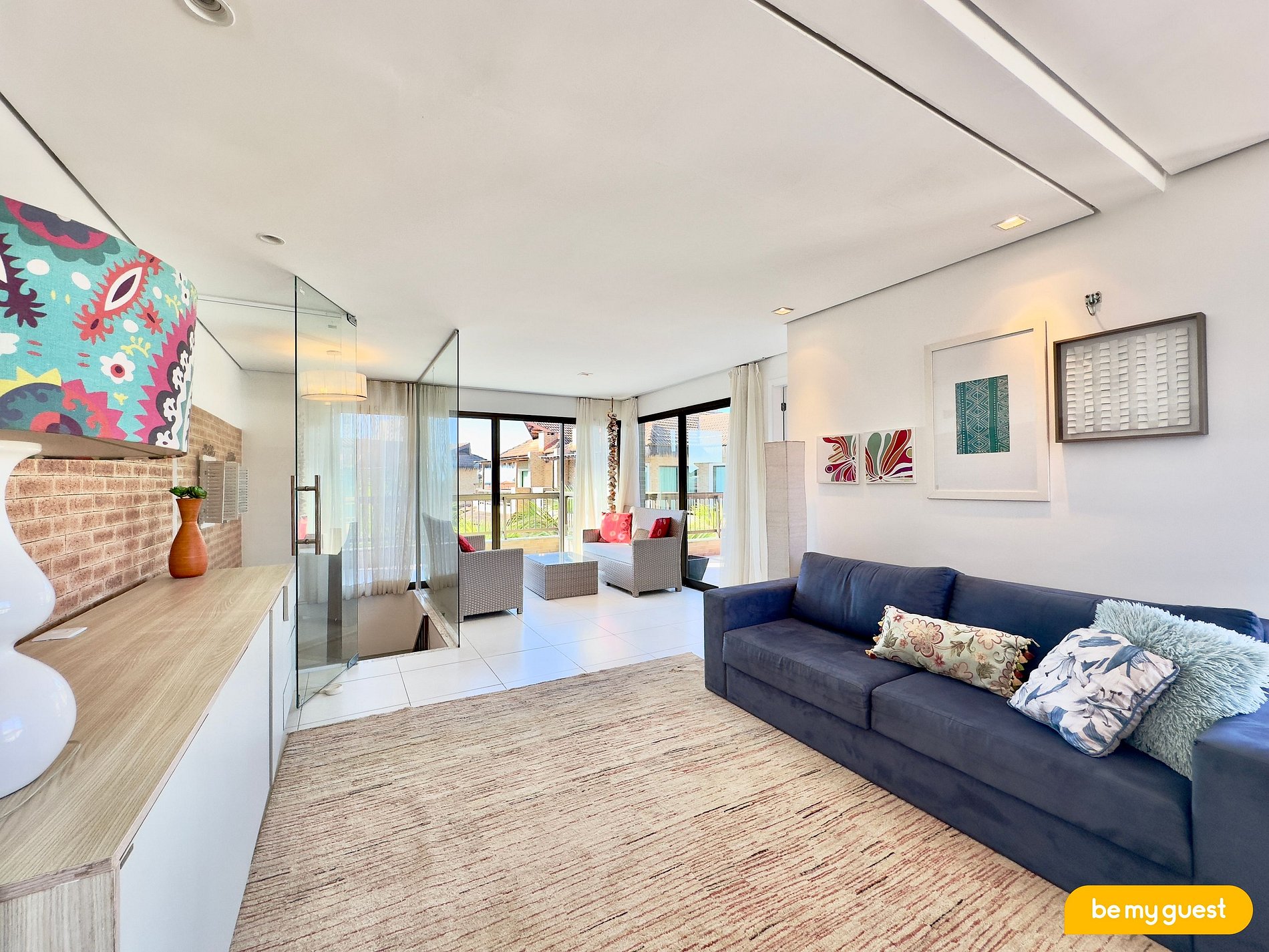 - Sala de Estar ampla e confortável com sofás, TV Smart, lavabo e conectada a varanda superior.