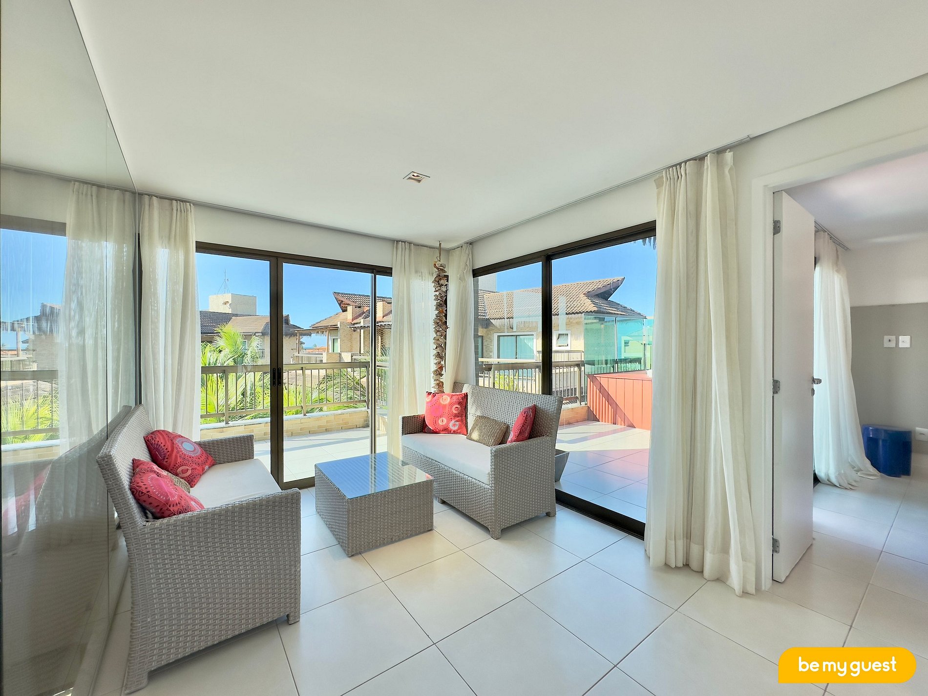 - Varanda superior com churrasqueira completa e banheira exclusiva, além de uma bela vista do resort