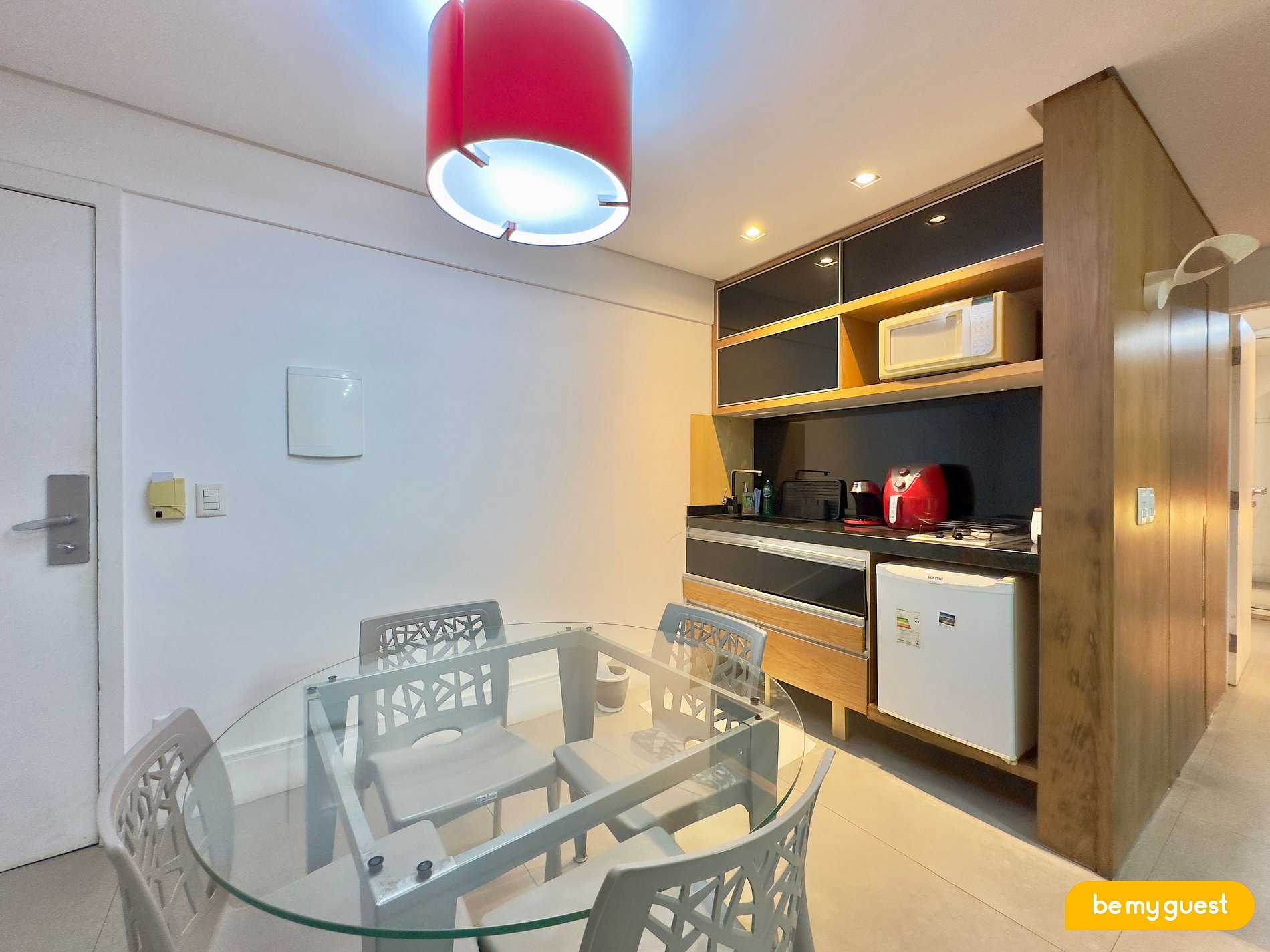 O apartamento é moderno e ideal para até 4 pessoas se acomodarem com total conforto. Essa acomodação é totalmente climatizada e conta com: