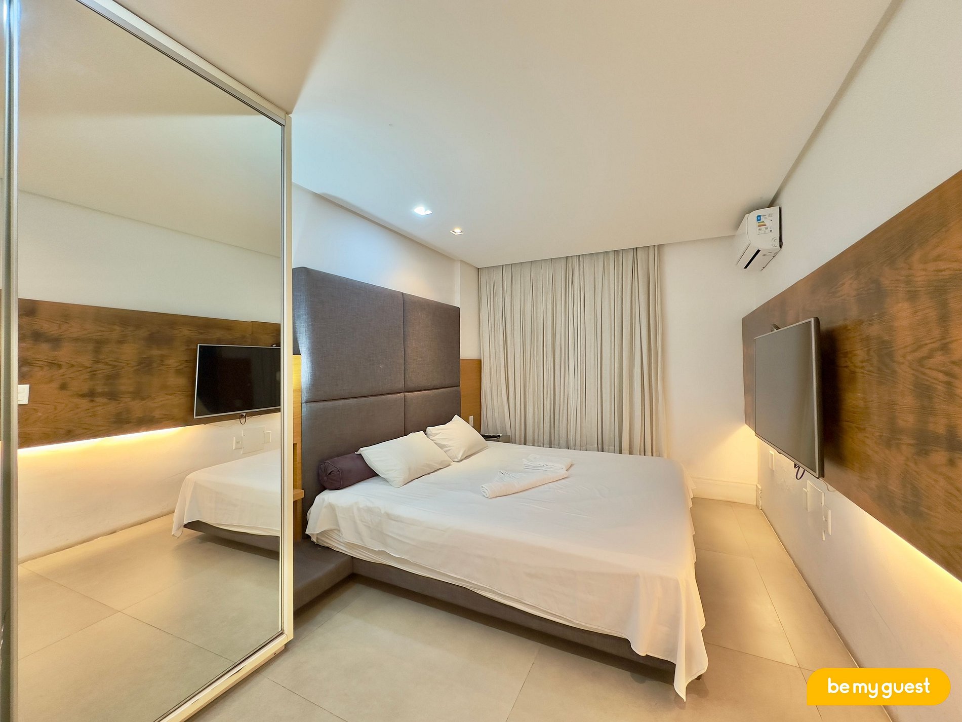 O apartamento é moderno e ideal para até 4 pessoas se acomodarem com total conforto. Essa acomodação é totalmente climatizada e conta com: