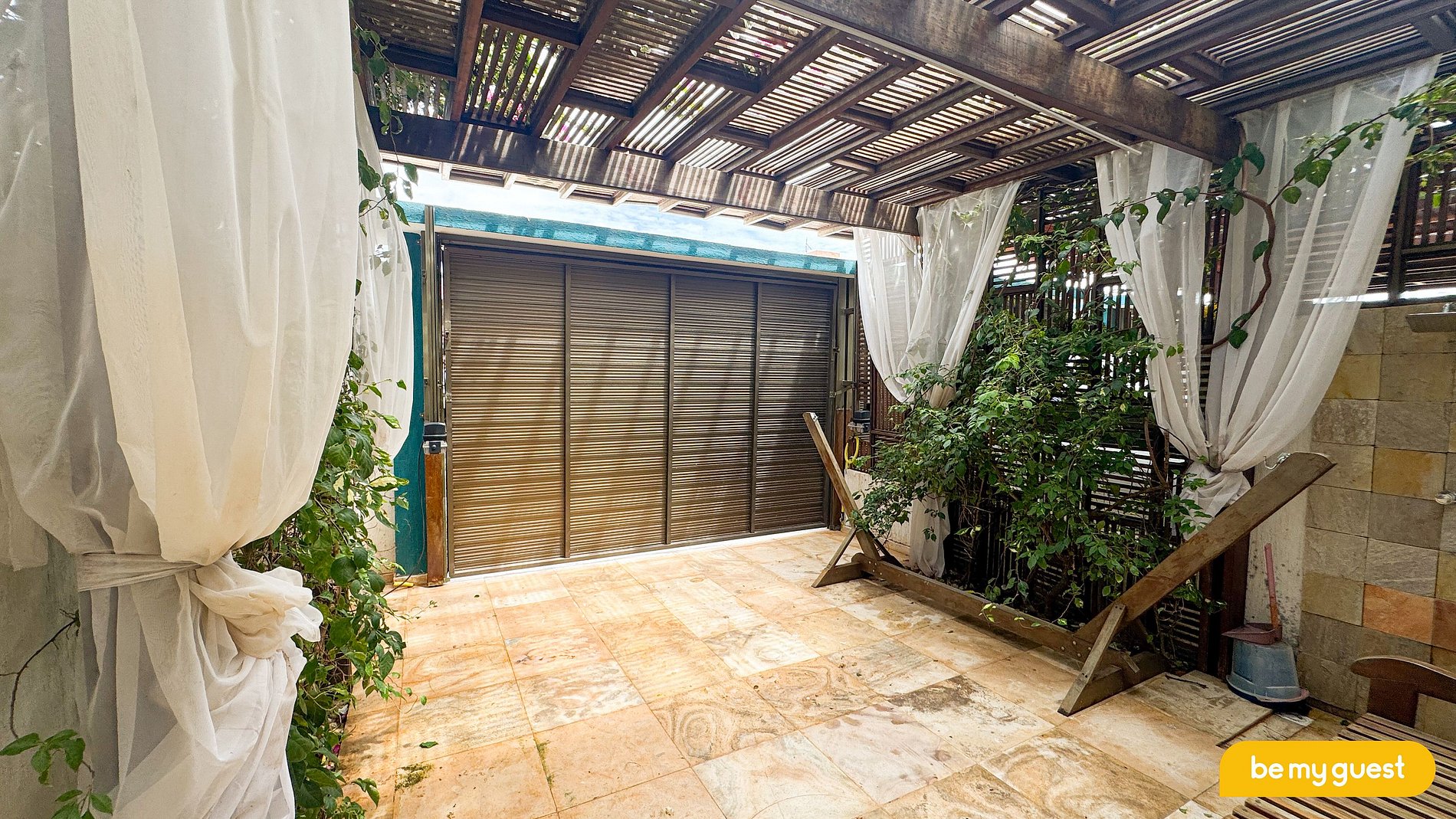 A acomodação é bem completa, fica bem localizada e possui uma garagem particular dentro do condomínio. A casa conta com: