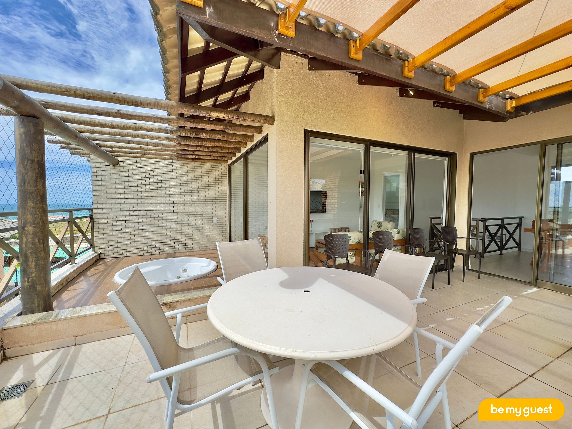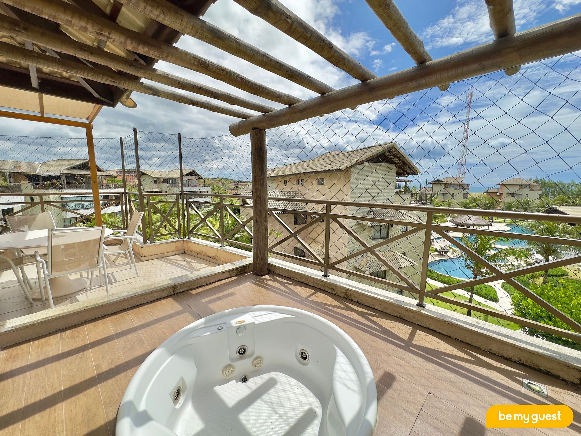 - Varanda com churrasqueira e banheira + vista privilegiada para a piscina e para o mar