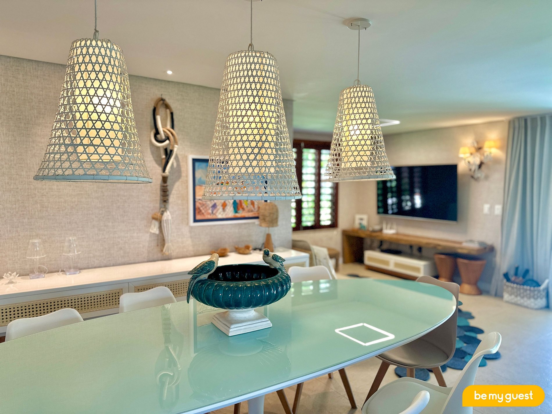 - Sala de Estar muito bem decorada com TV Smart ampla e uma bela mesa de jantar