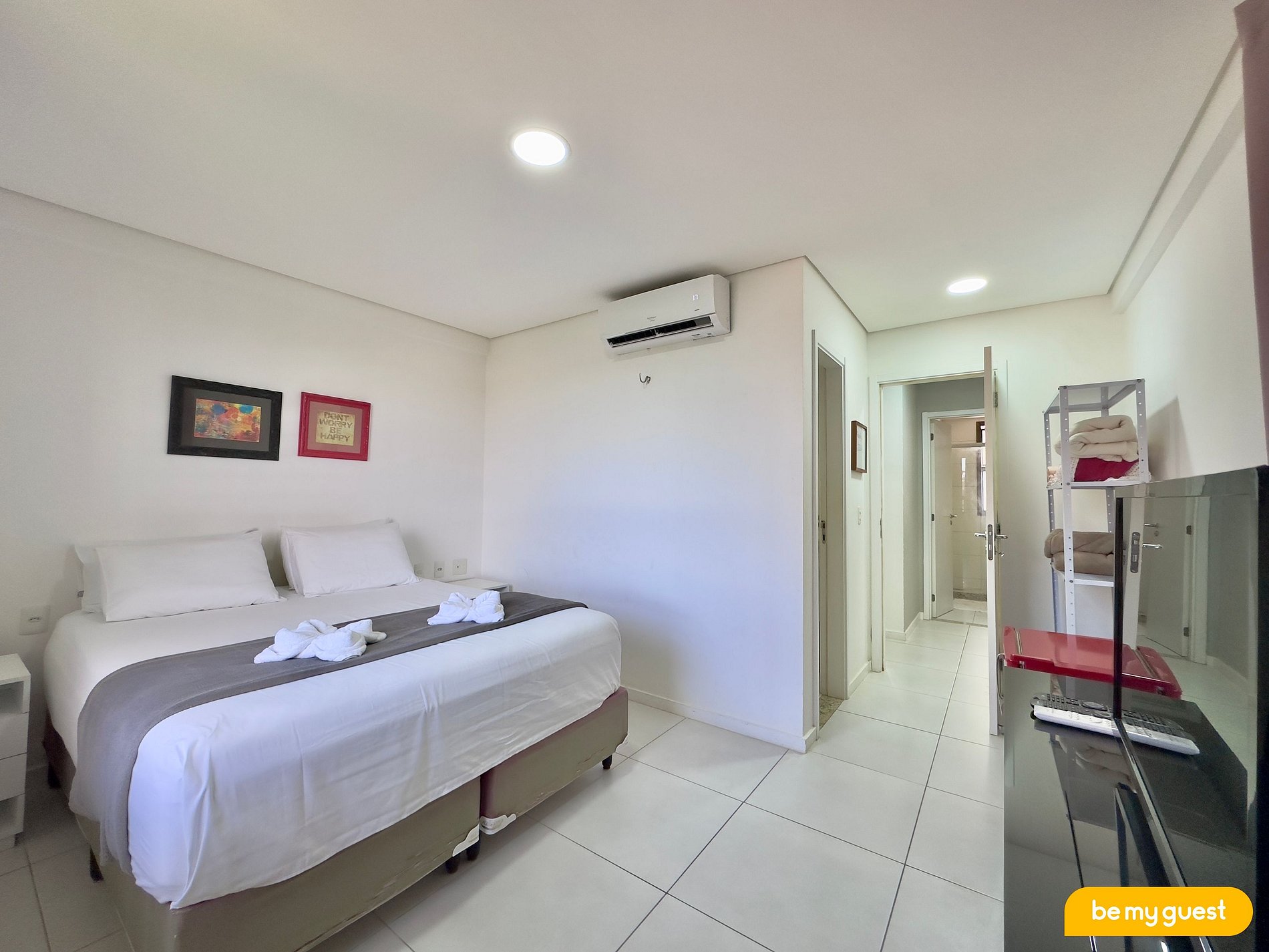 - Suíte principal com cama Queen, TV Smart e ar-condicionado