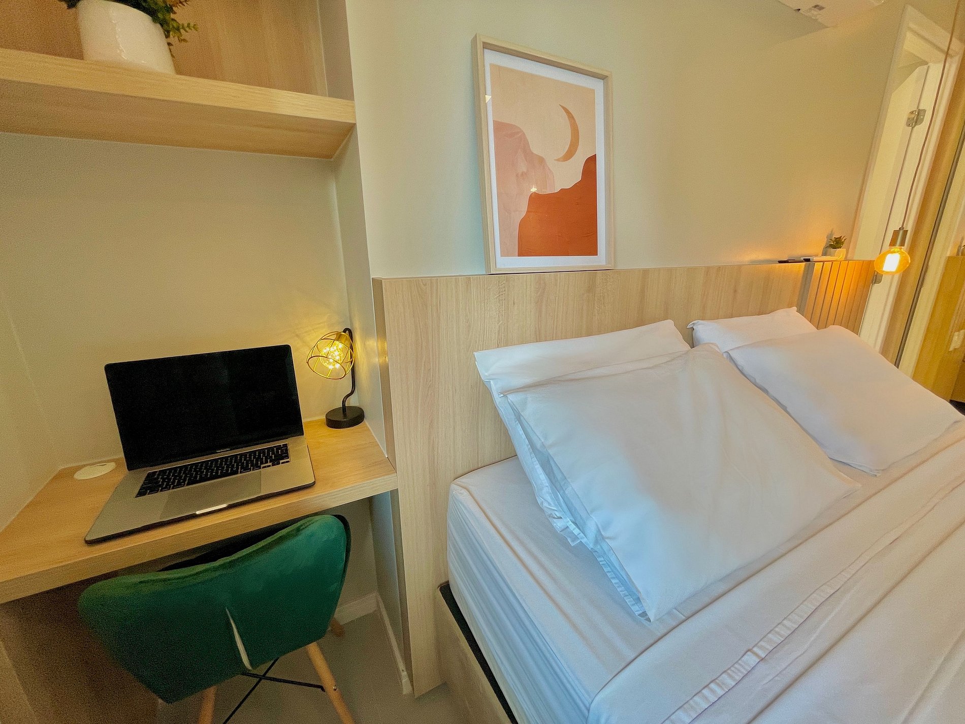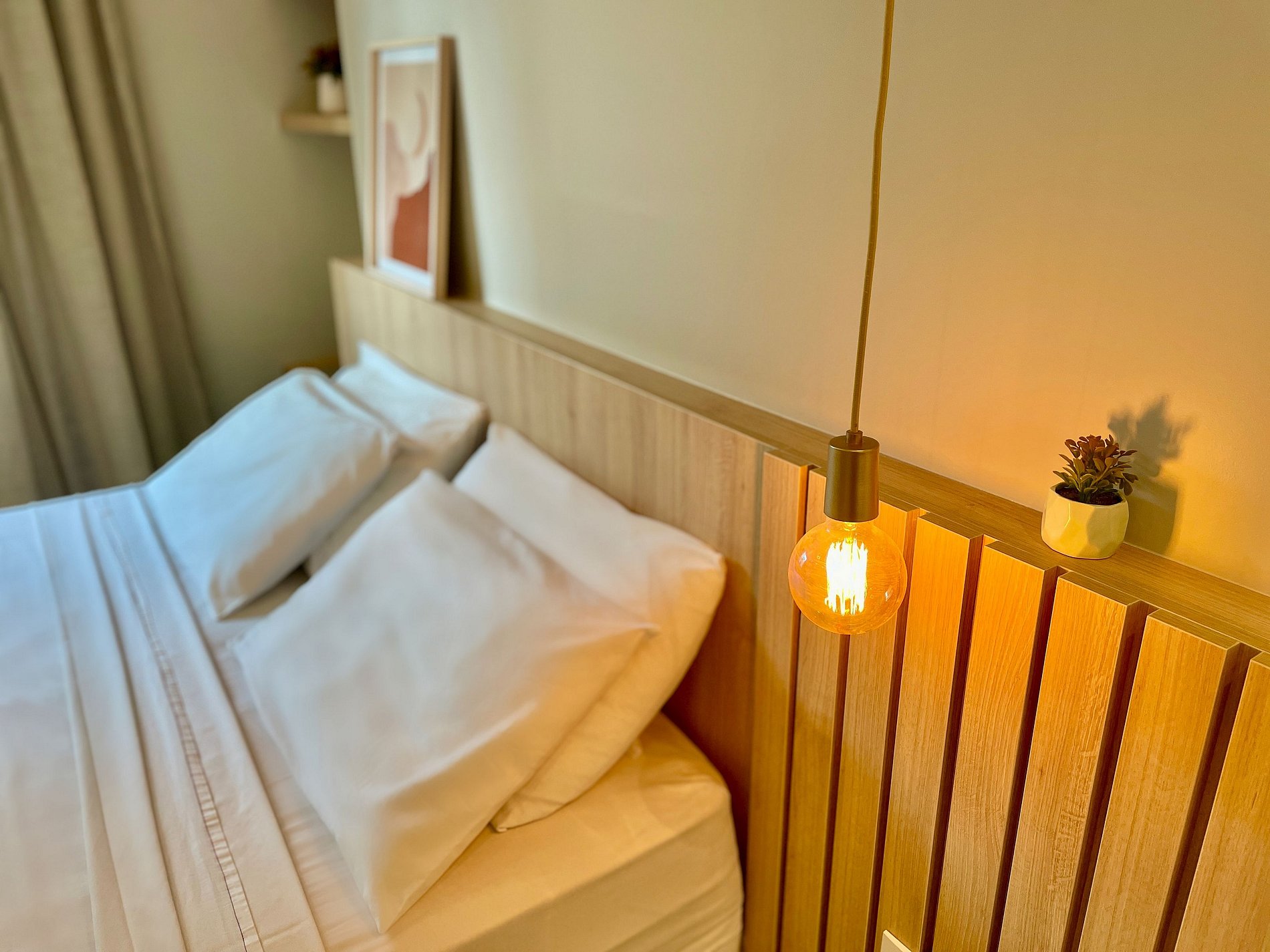 > Suíte com cama Queen + Ar Condicionado + Espaço para Notebook + + TV Smart grande