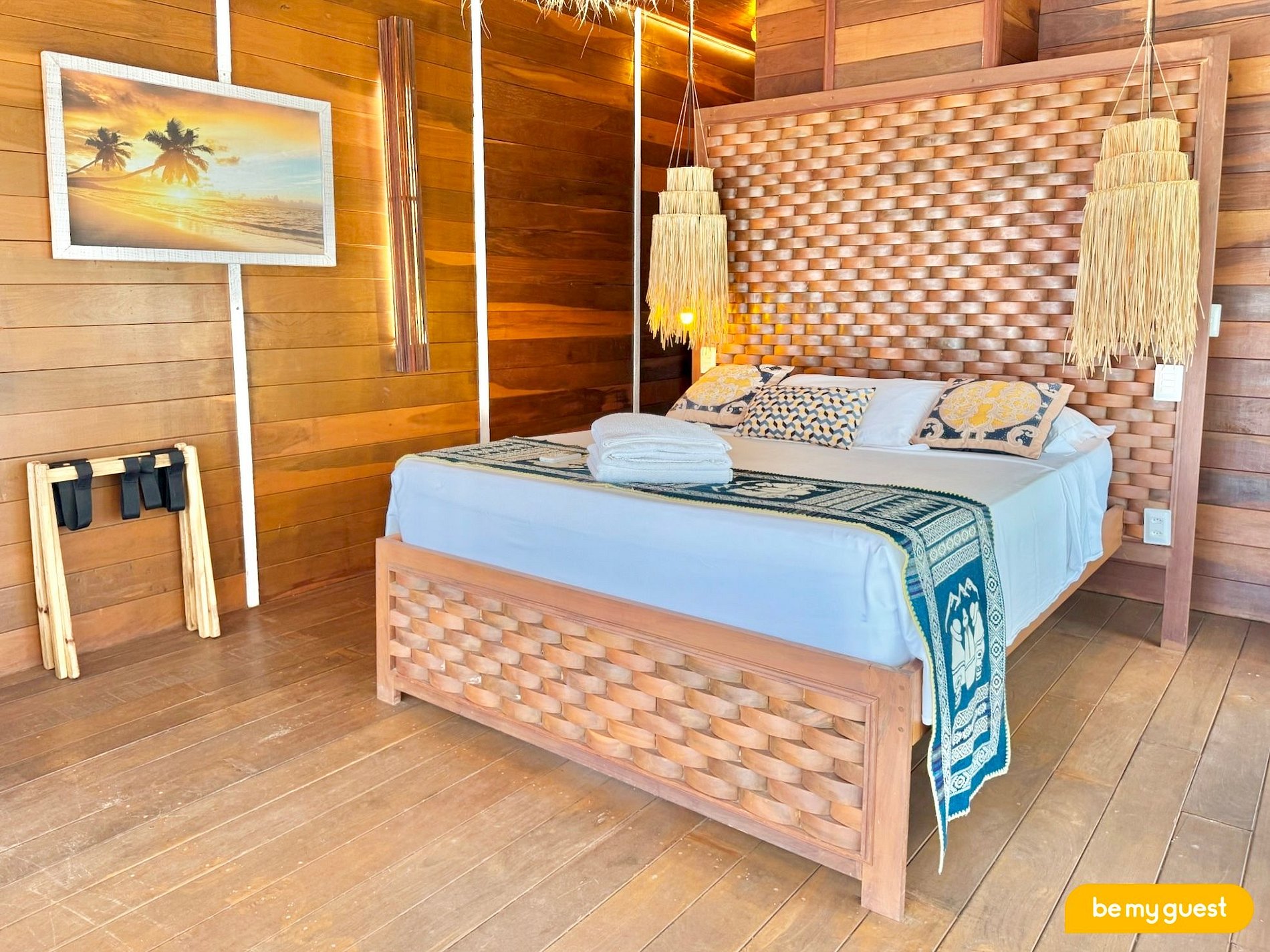 A suíte combina elegância e aconchego, com decoração especial e vista frontal para o oceano. Ideal para casais que querem relaxar em um ambiente exclusivo, aproveitando dias de descanso com cenário inesquecível.