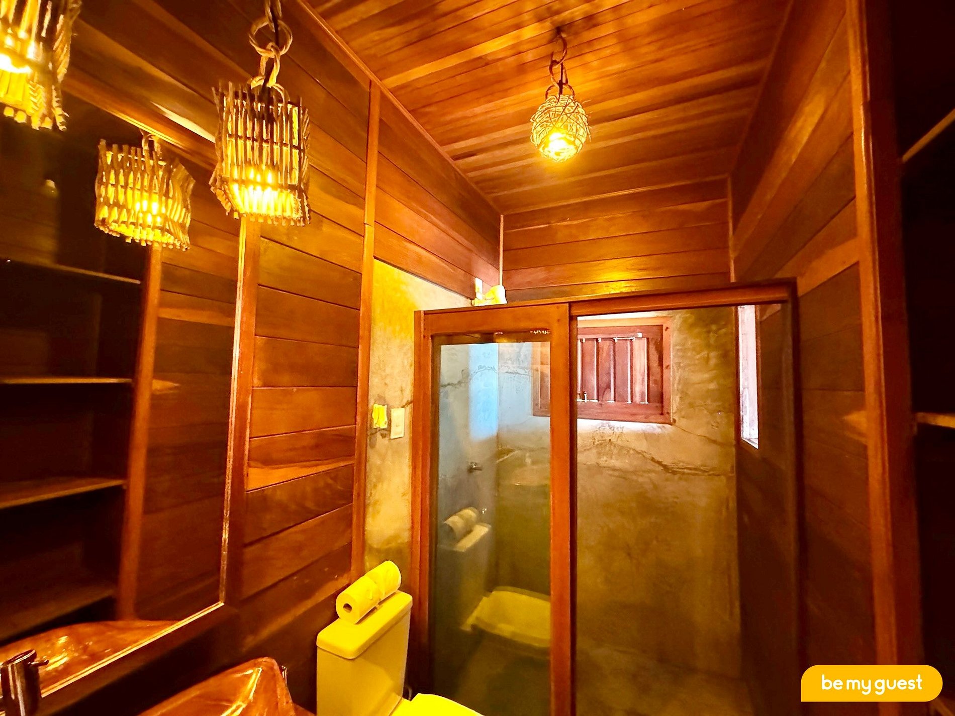 Na área externa, os hóspedes desfrutam de uma piscina com vista panorâmica para o mar, espaço de estar com sofás e poltronas aconchegantes e uma cozinha compartilhada para maior comodidade. Todos os detalhes foram pensados para proporcionar uma estadia relaxante e inesquecível.