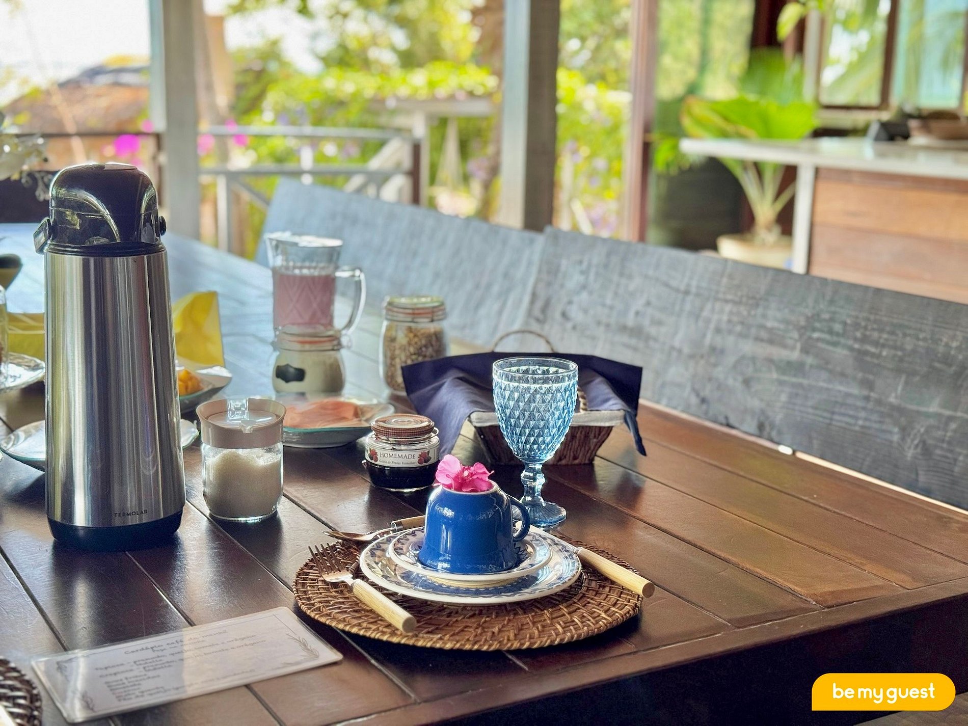 Na área externa, os hóspedes desfrutam de uma piscina com vista panorâmica para o mar, espaço de estar com sofás e poltronas aconchegantes e uma cozinha compartilhada para maior comodidade. Todos os detalhes foram pensados para proporcionar uma estadia relaxante e inesquecível.
