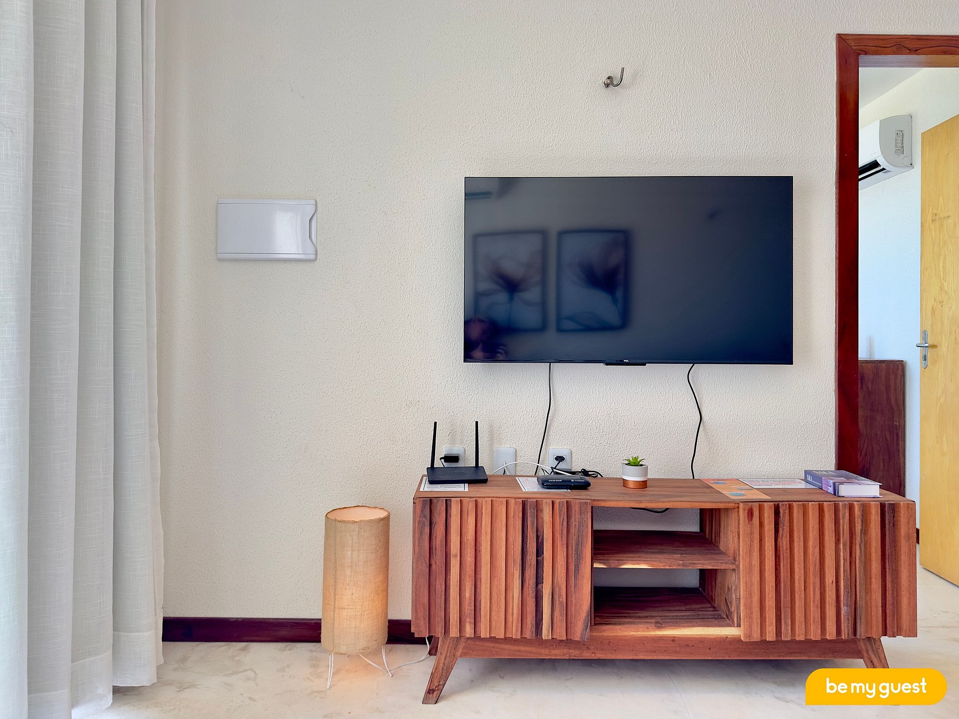 - Sala de estar climatizada com sofá-cama e TV Smart
