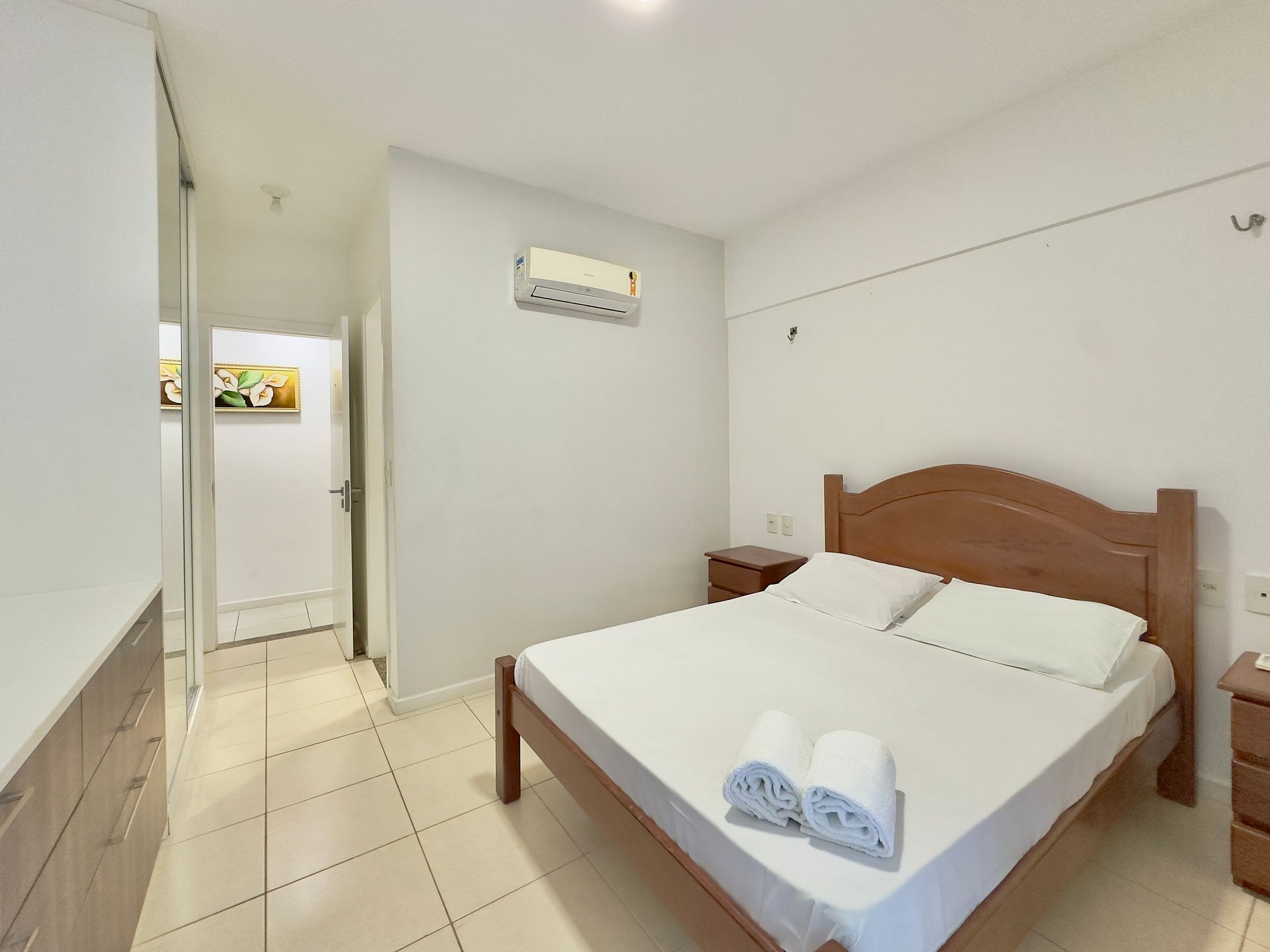 - Suíte principal com cama Queen, armário e ar-condicionado