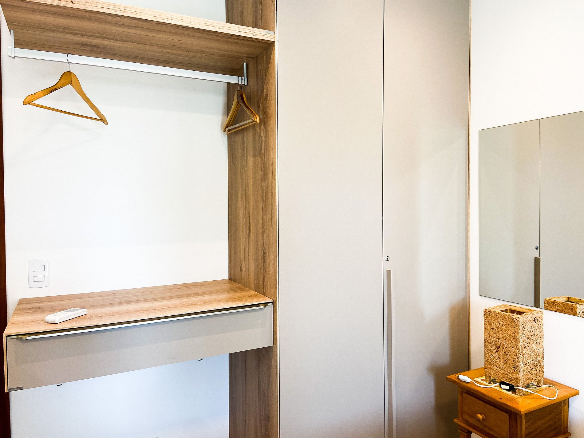 Apartamento padrão Be My Guest, com dois quartos. Uma suíte com cama queen e um quarto ao lado do banheiro com duas camas de solteiro. Ambos quartos com armários para colocar as malas e ambos banheiros com água quentinha. Uma área de lazer externa maravilhosa para dar boas risadas! Cozinha equipada com todos os utensílios que você possa vir a precisar e um espaço de lavanderia para lavar as roupas de banho!