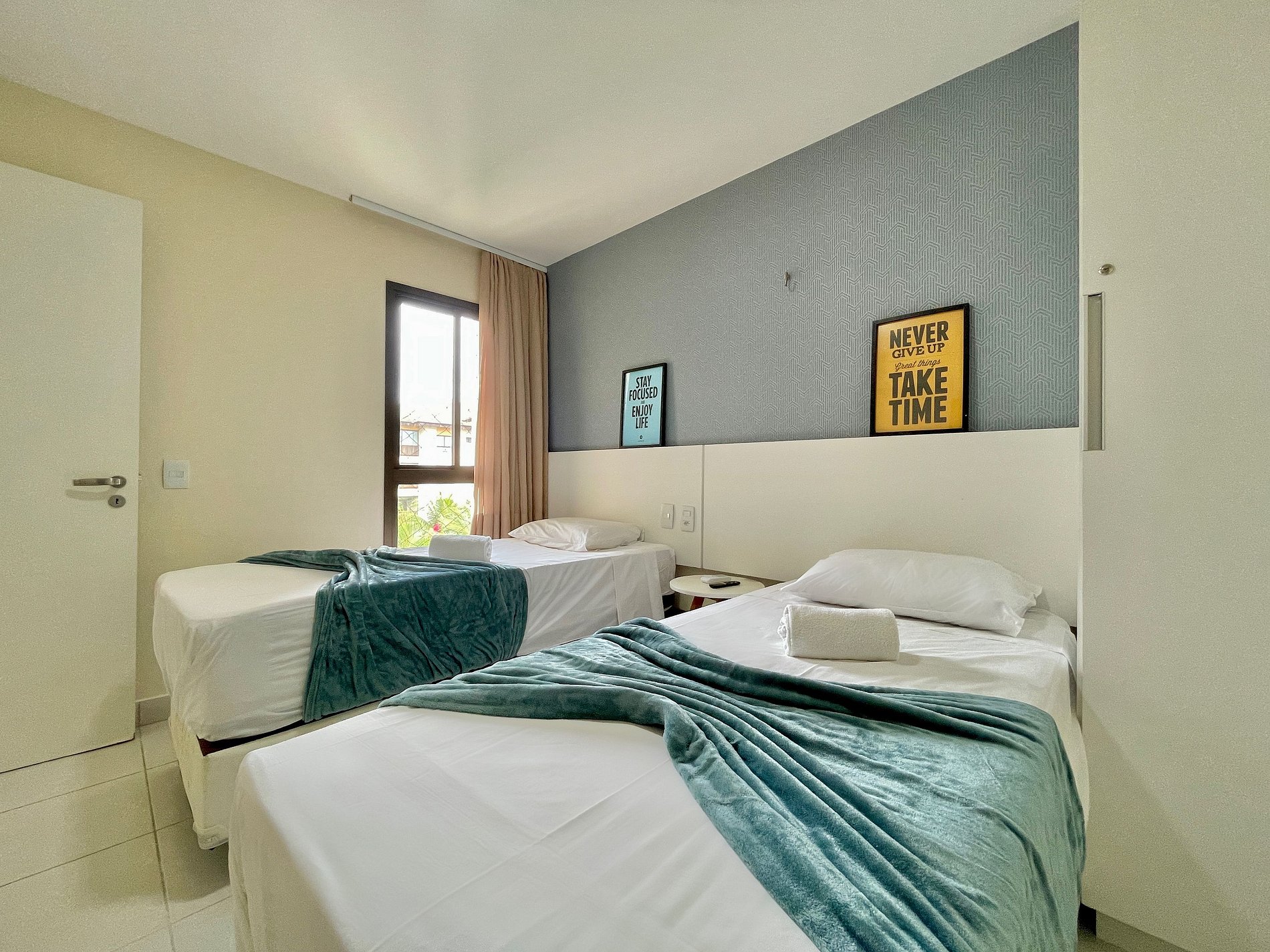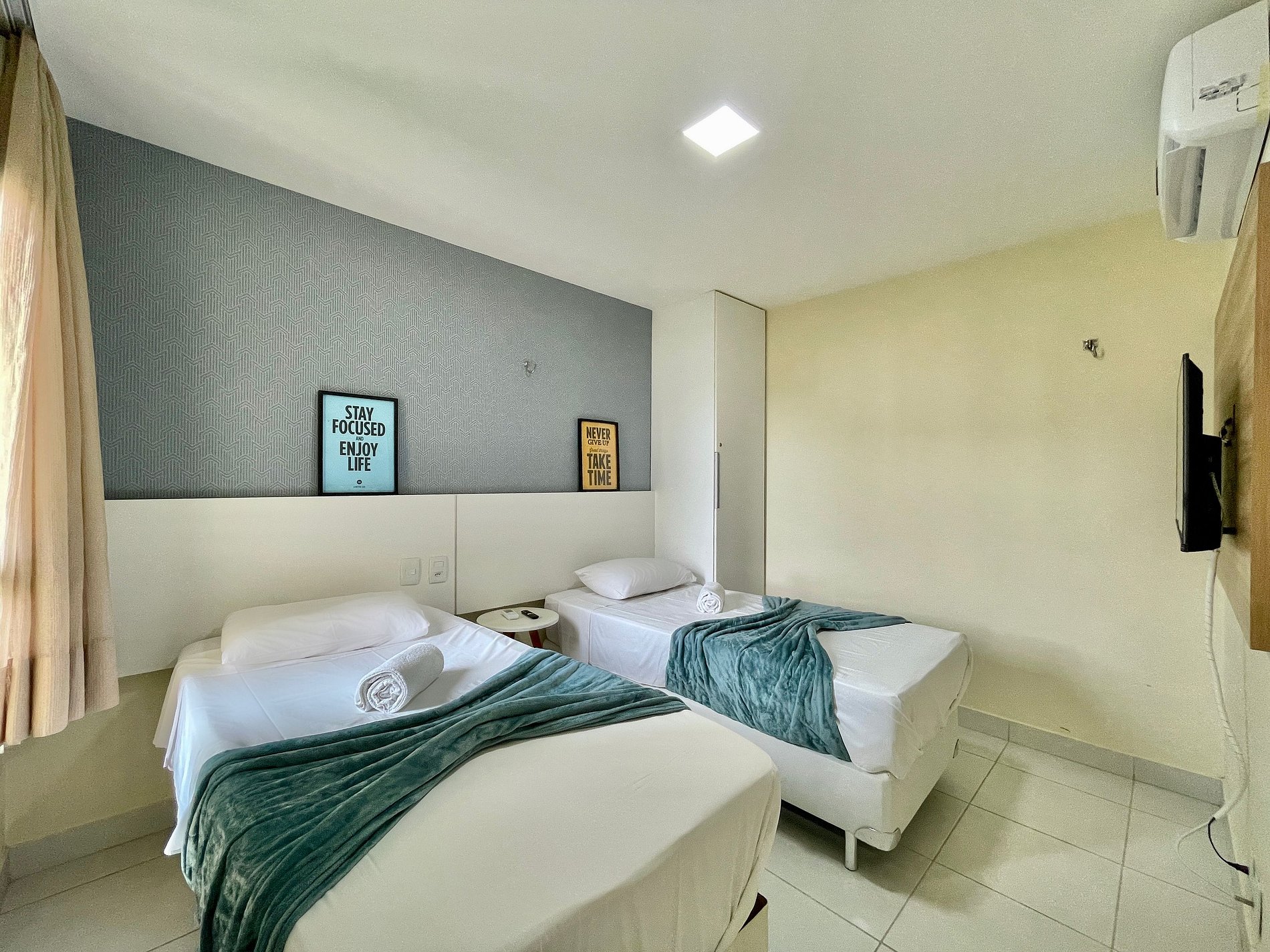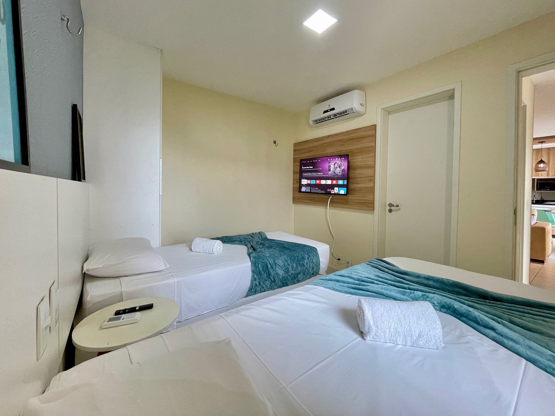 > Suíte com 2 camas de solteiro e 2 colchões de solteiro + ar condicionado e TV Smart