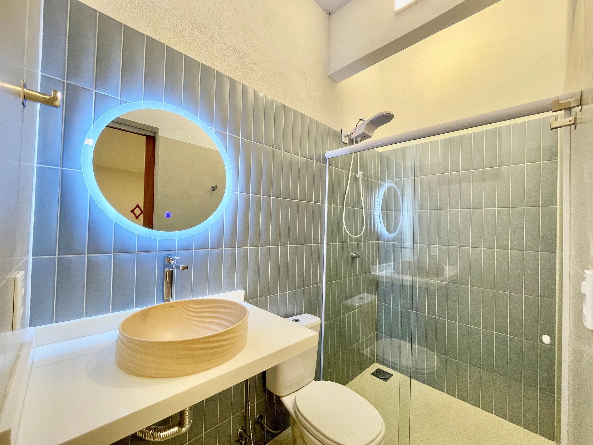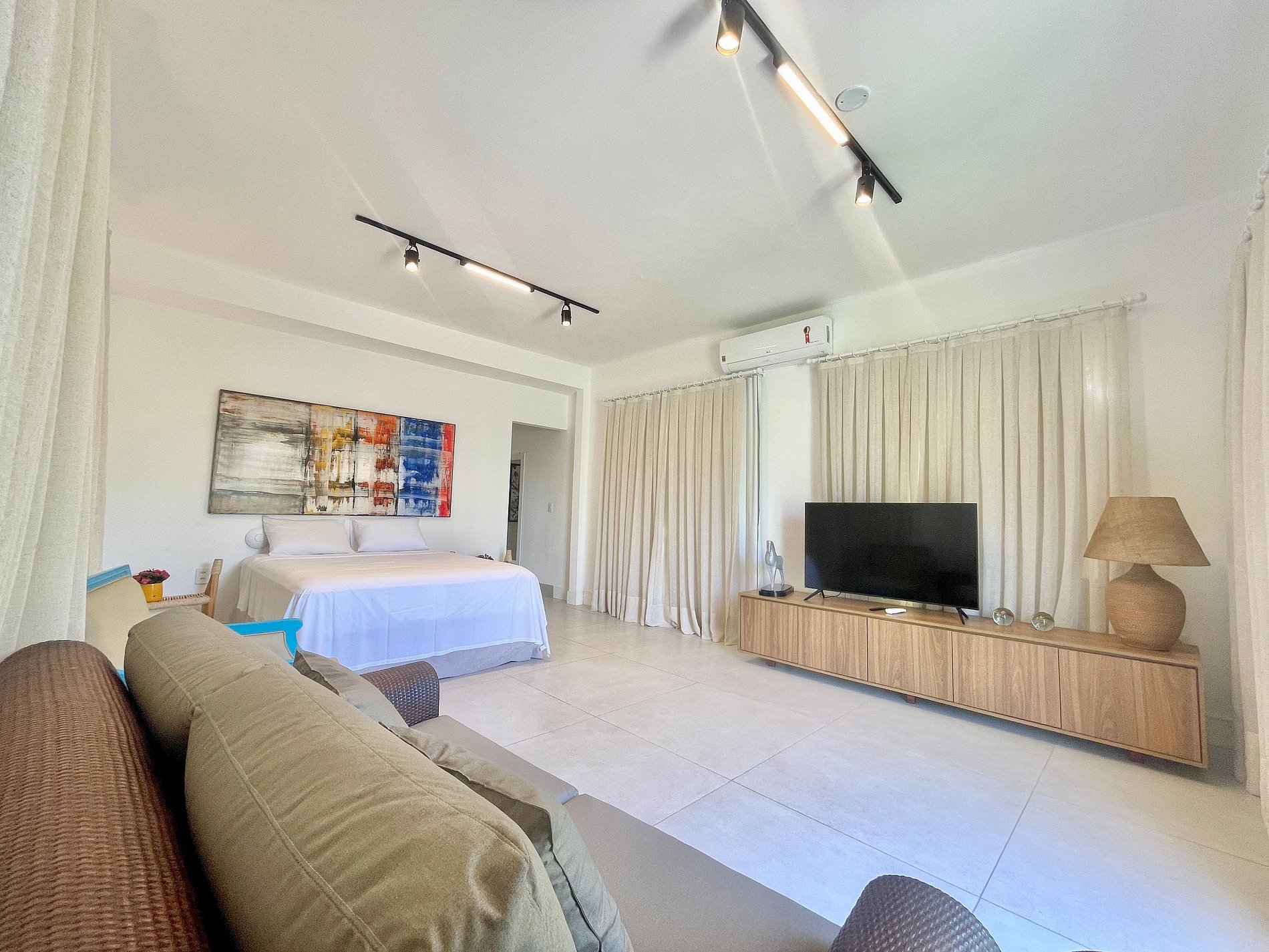 > Suíte Master bem ampla que fica em uma área exclusiva da casa e possui Cama Queen, TV Smart, ar condicionado, poltronas, closet e um banheiro sem igual