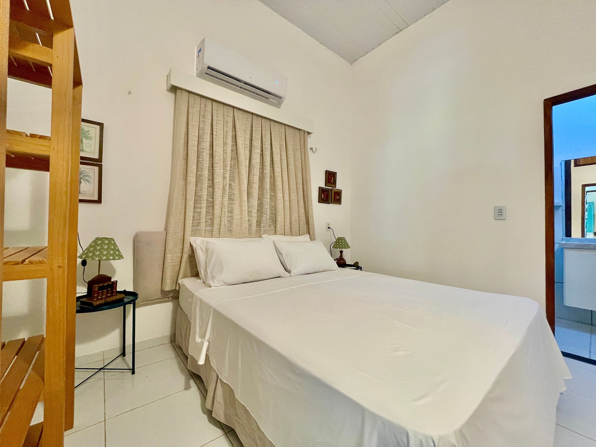 > Suíte 2 conta com Cama Queen, Ar condicionado e uma vista para o jardim