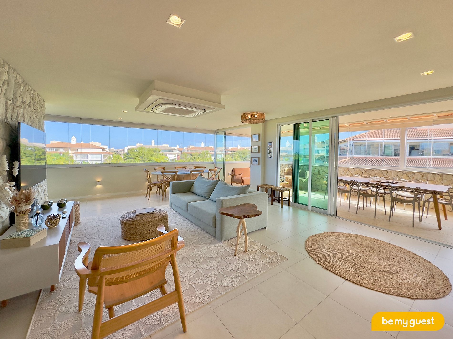 - Sala de Estar super ampla com ar condicionado central, TV Smart grande e uma bela mesa de jantar com vista panorâmica do resort