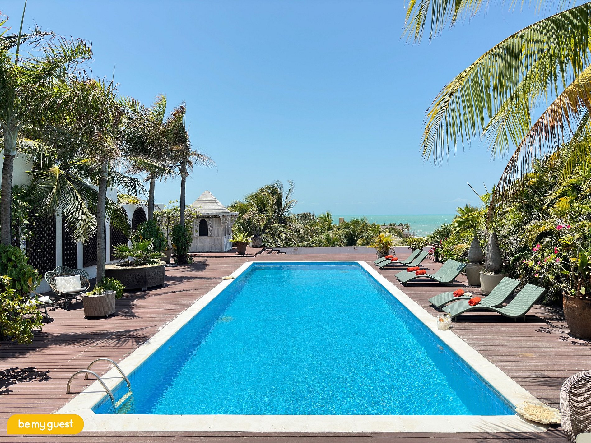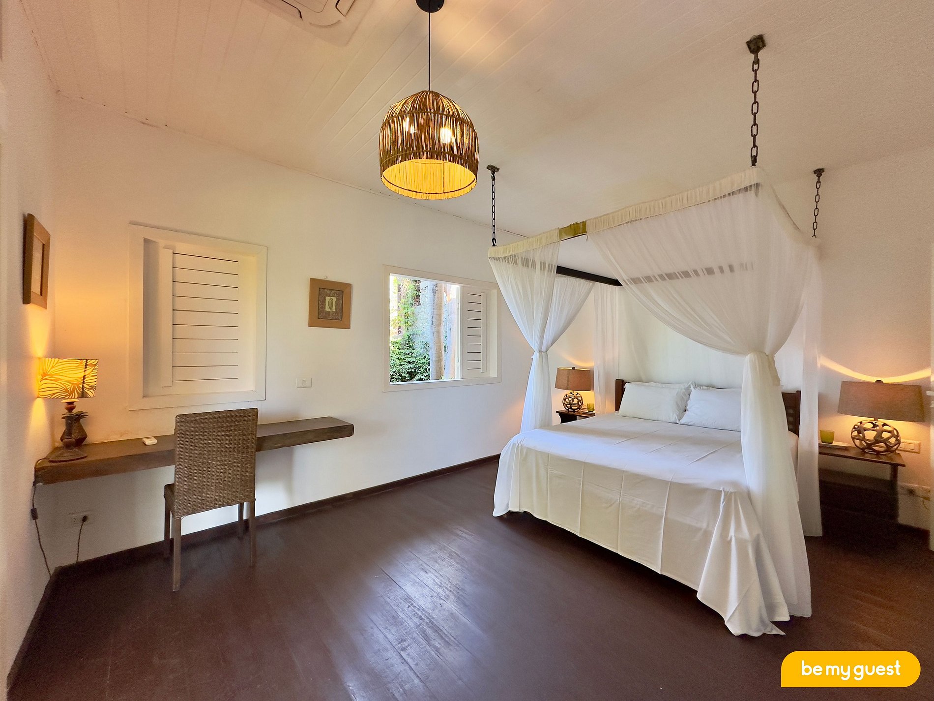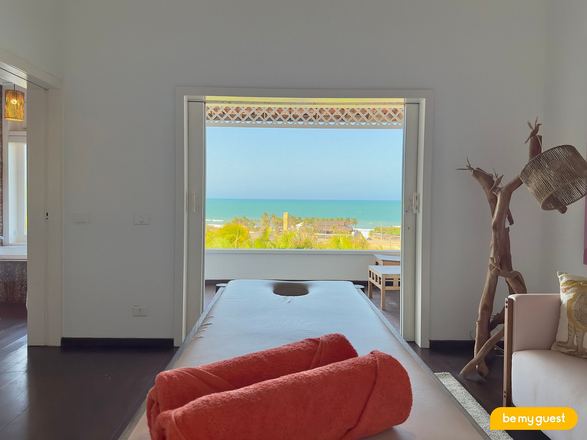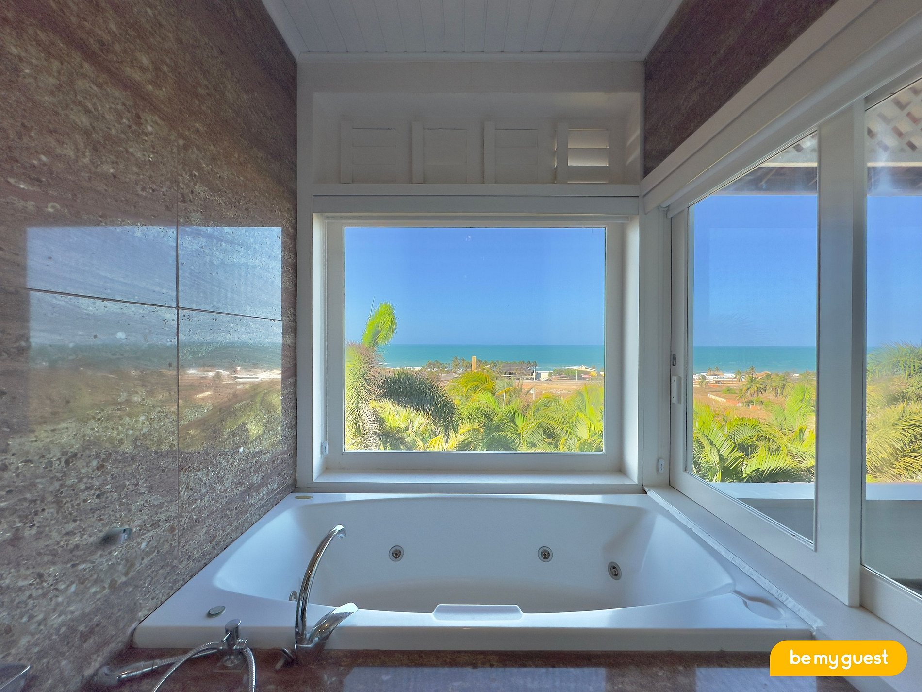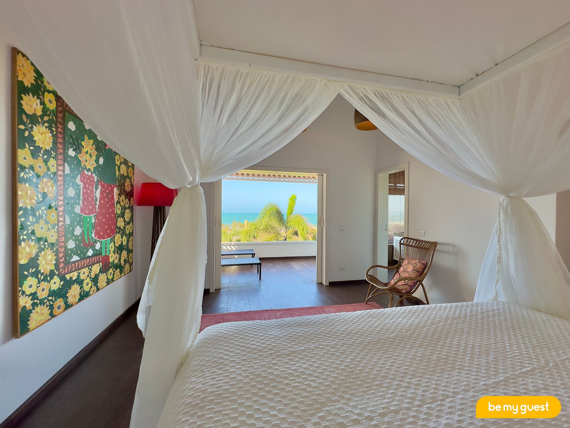 La casa cuenta con cinco amplias y lujosas suites, además de una suite principal, que ofrece un acogedor espacio con aire acondicionado y vistas indescriptibles al mar, además de un baño con bañera y sillón de masaje para sus momentos de relajación.