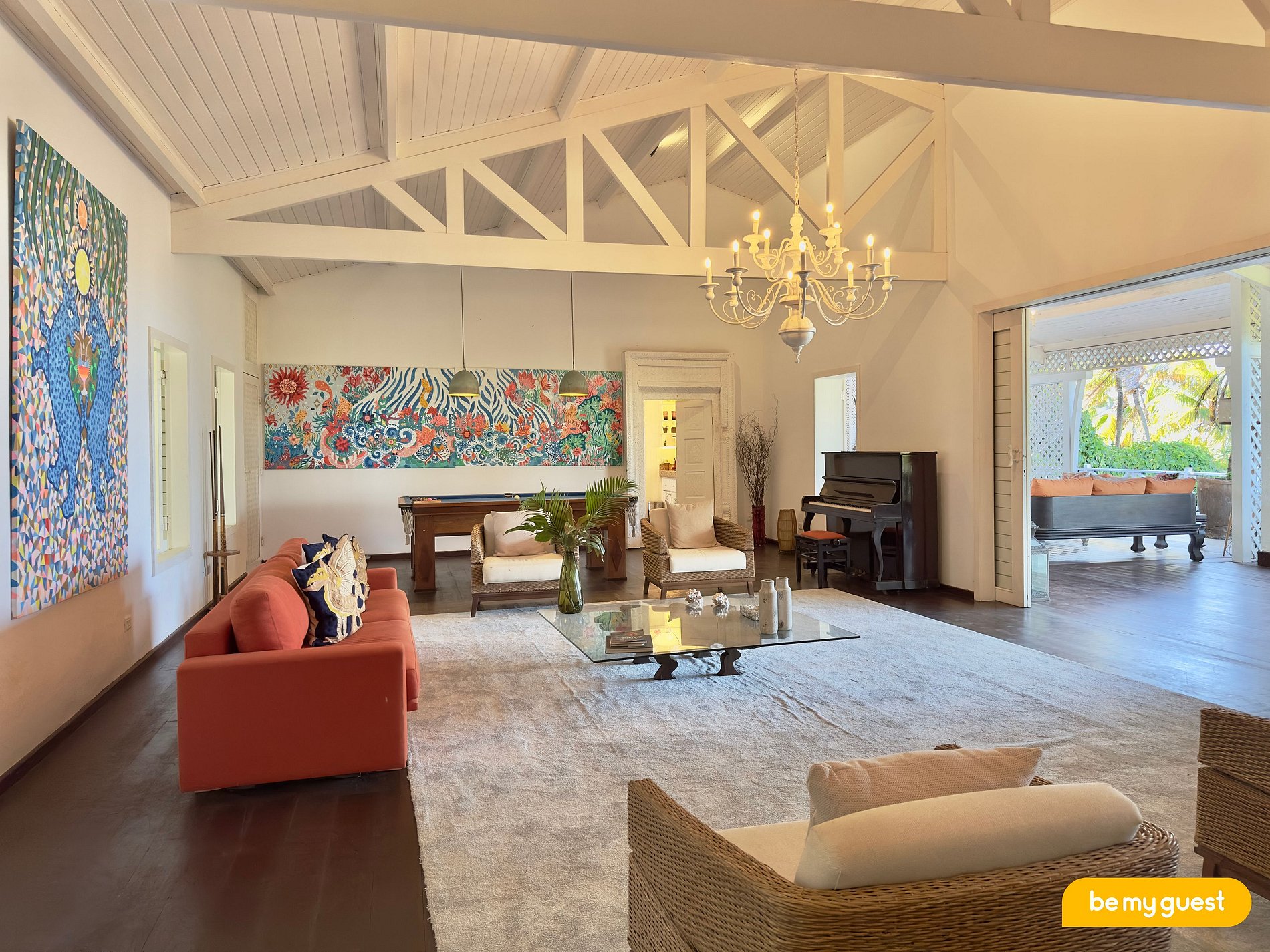 Villa Maison presume de un diseño abierto para que siempre pueda disfrutar de la brisa de la playa de Prainha. La decoración, inspirada en la artesanía cearense, es lujosa y confortable.