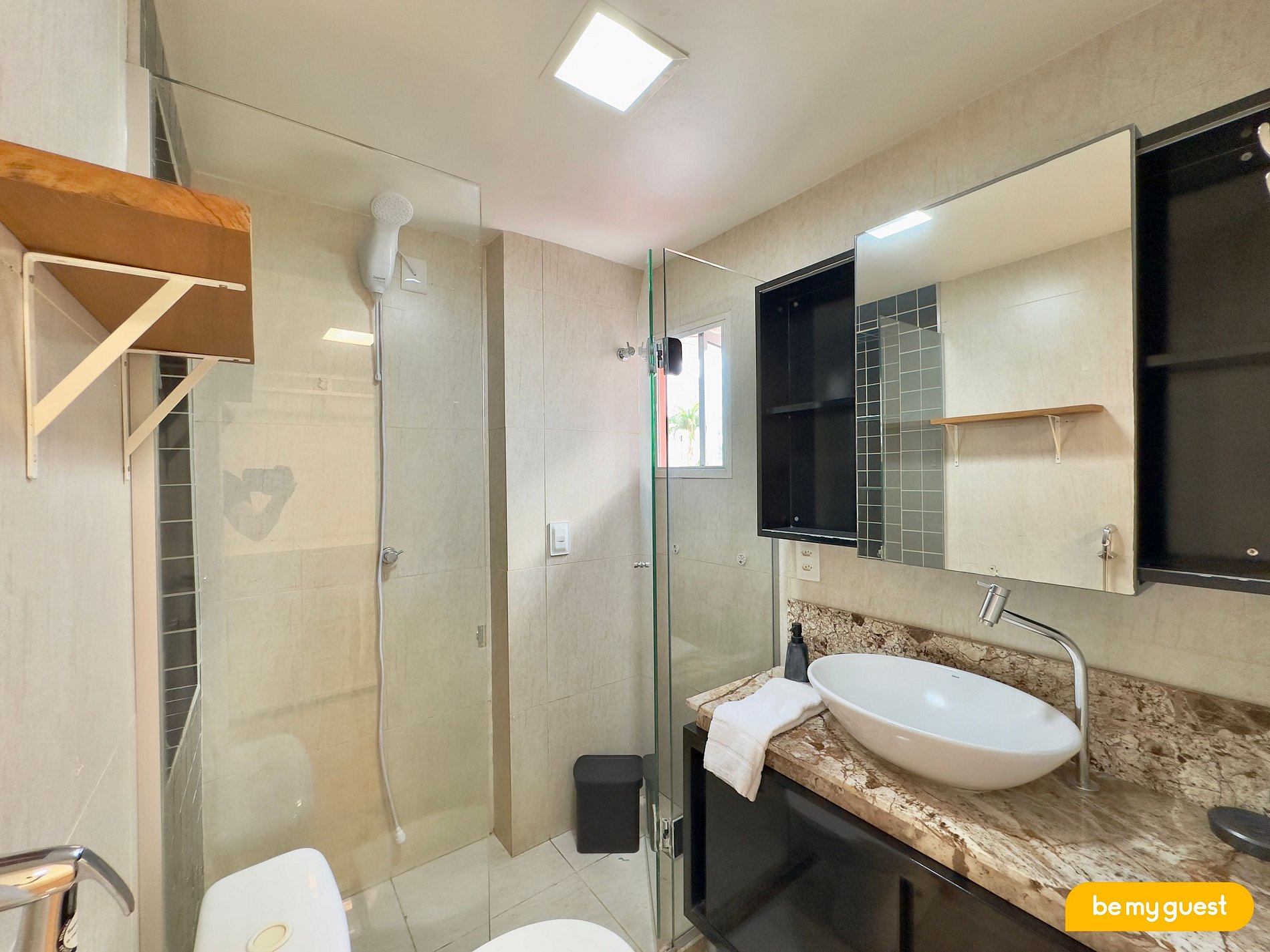 O apartamento é totalmente climatizado, possui capacidade para 2 hóspedes e conta com: