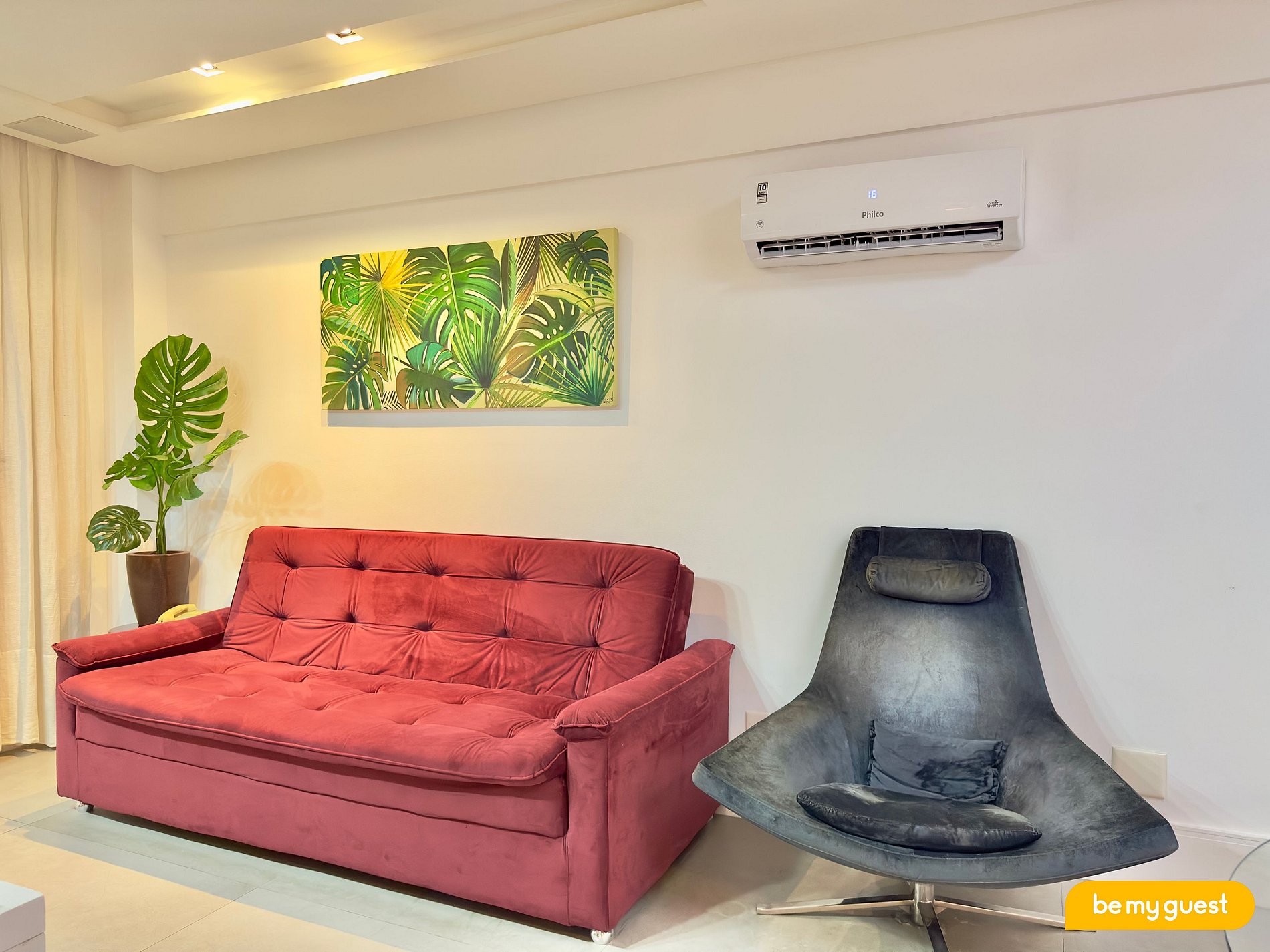 O apartamento é moderno e ideal para até 4 pessoas se acomodarem com total conforto. Essa acomodação é totalmente climatizada e conta com: