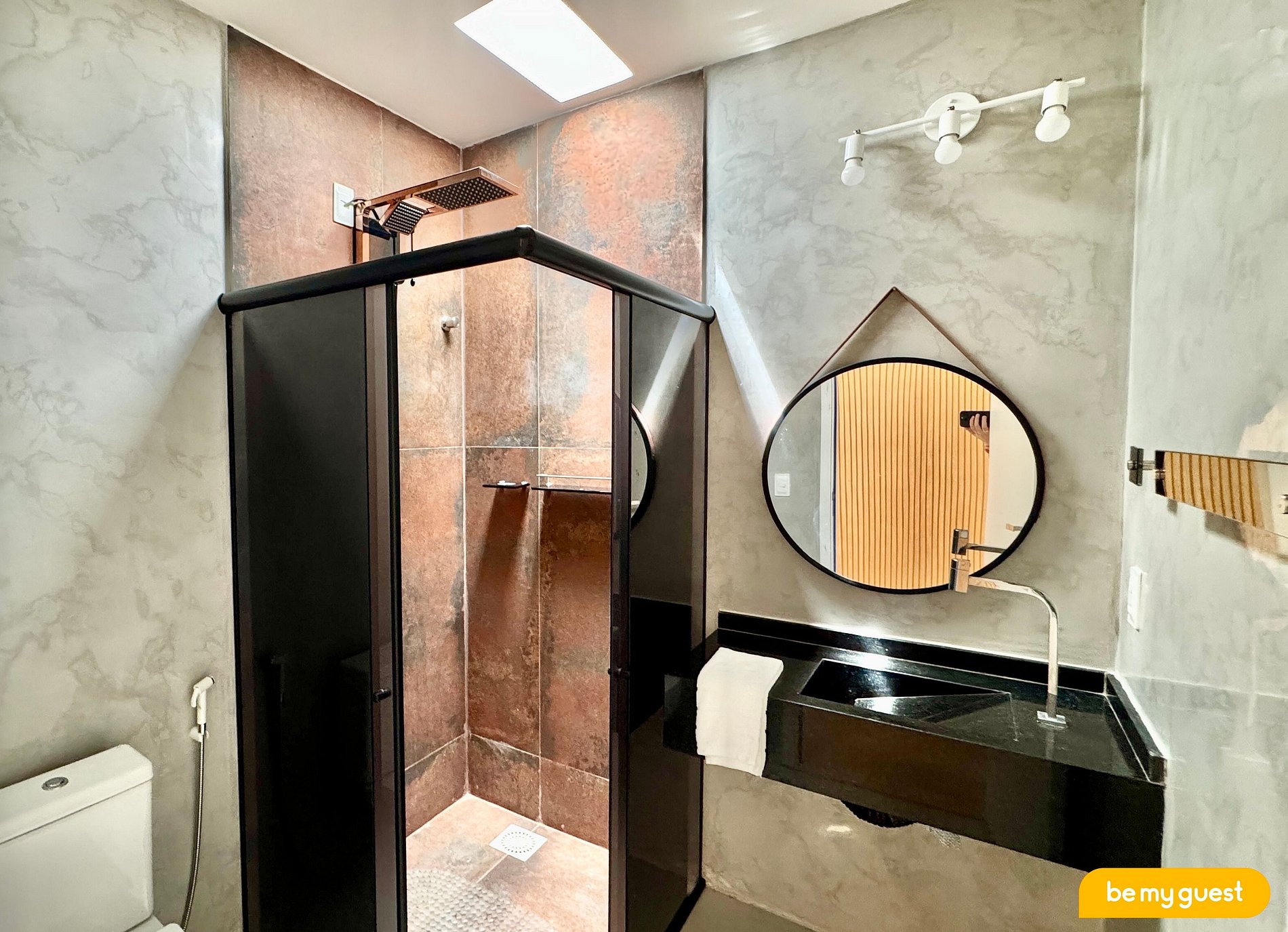 - Quarto principal com Cama casal Queen + Ar Condicionado