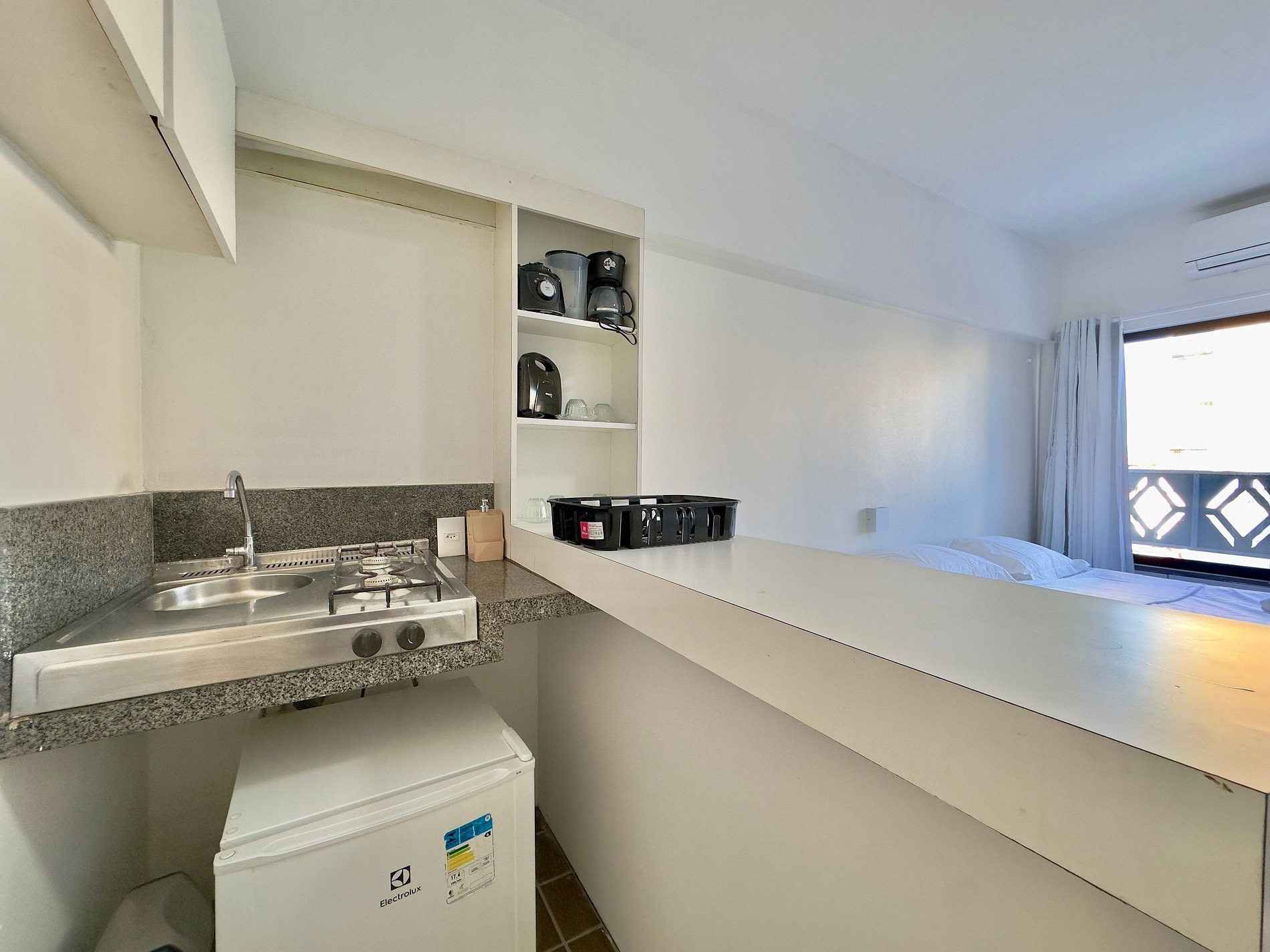 - Cozinha compacta, equipada com itens essenciais para sua estadia
