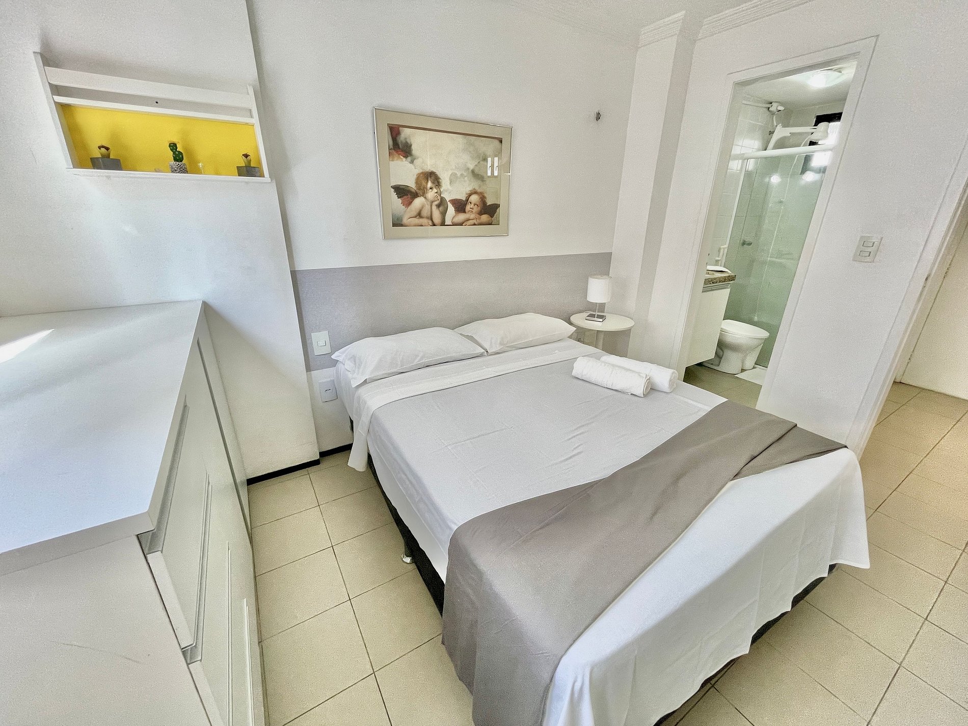 Nossas acomodações contam com roupas de cama completas e itens de higienização para todos os hóspedes!