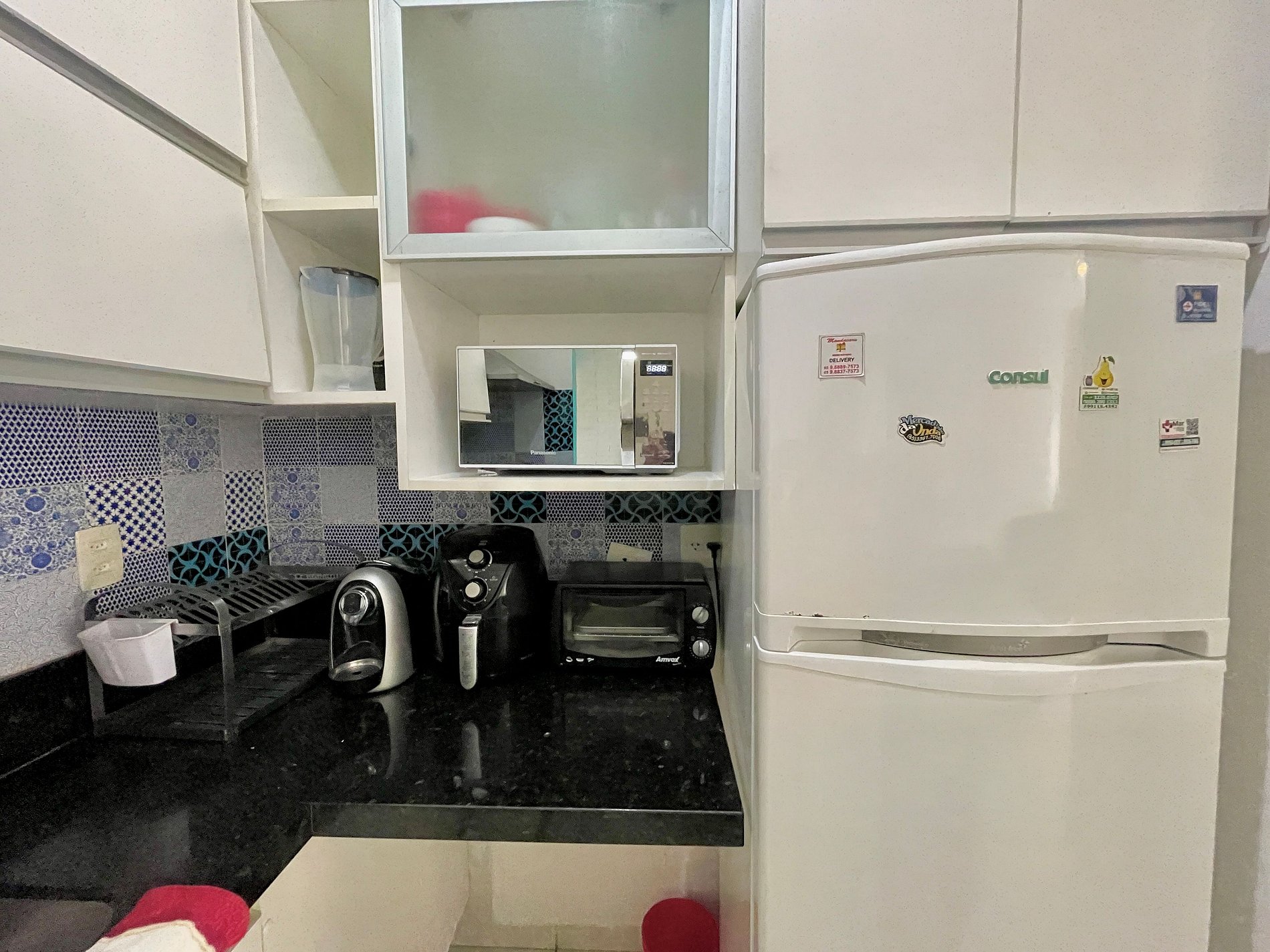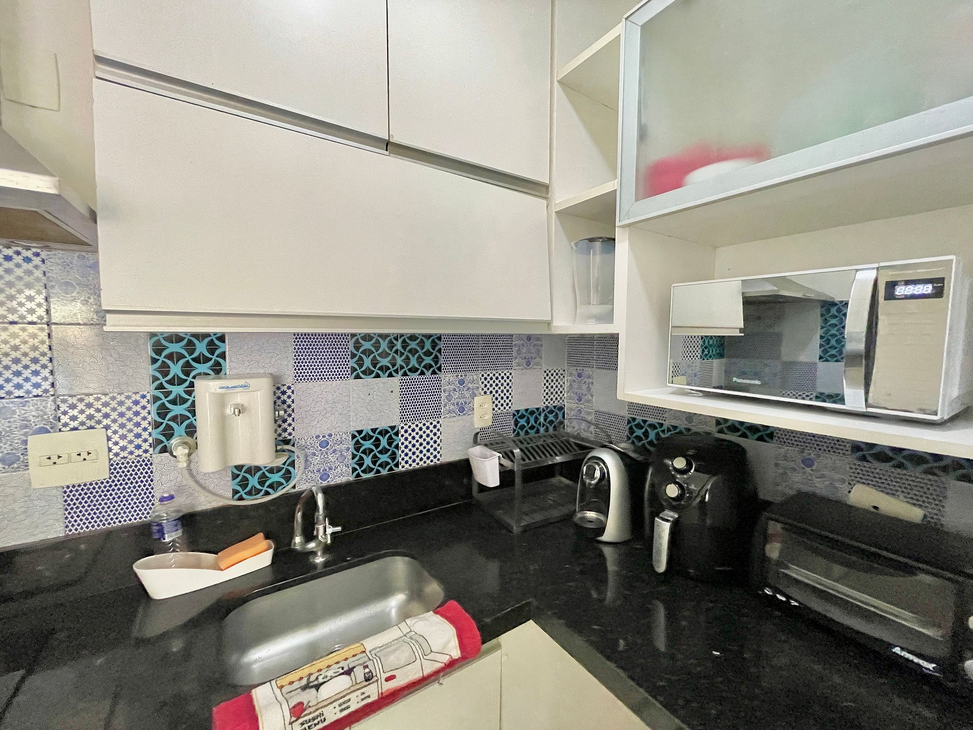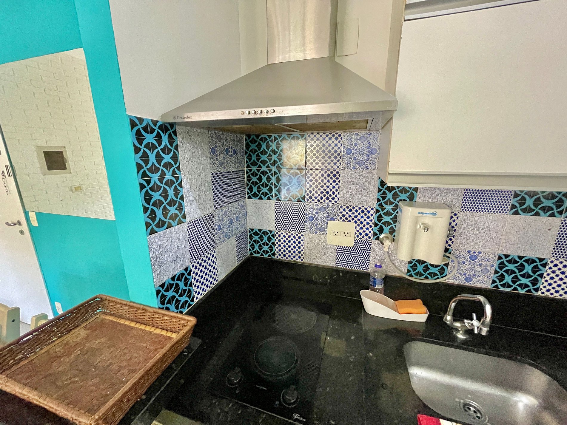 > Cozinha completa tipo americana com todos os utensílios necessários para sua estadia