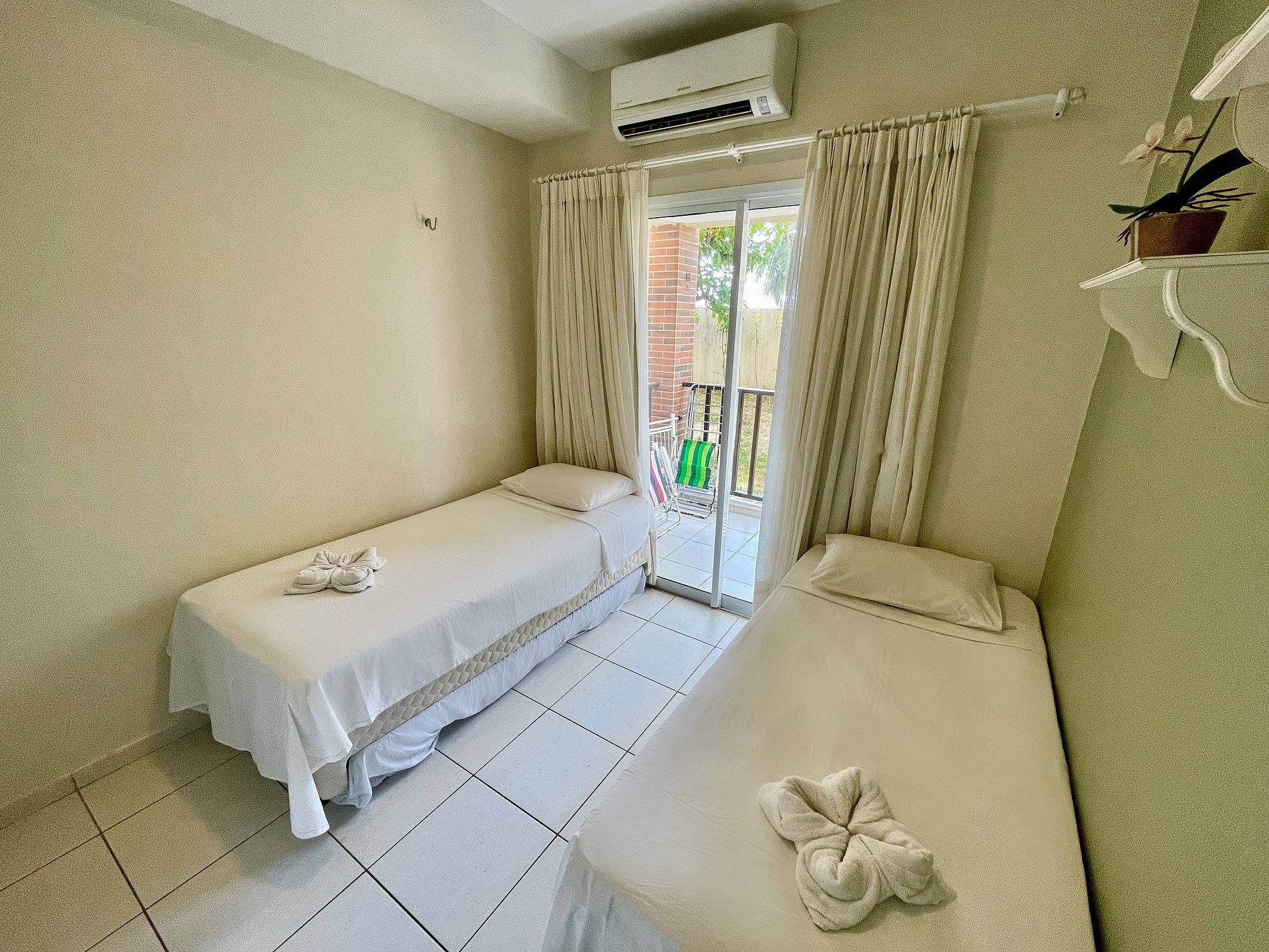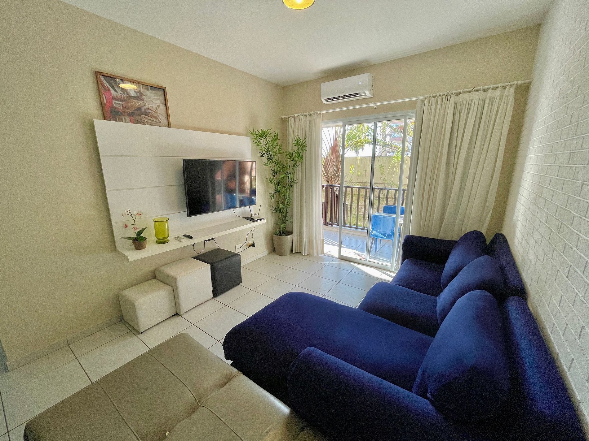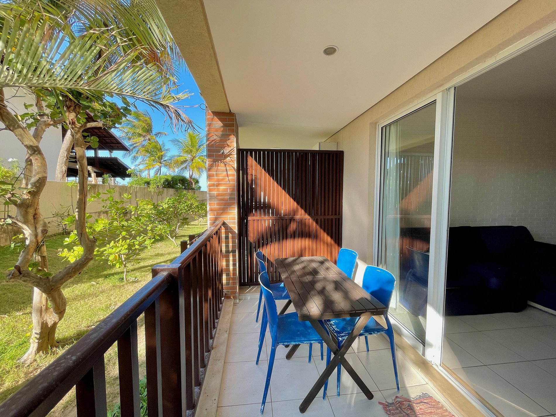 Apartamento térreo, completo e bem confortável no Condomínio Beach Living estilo resort em parceria com Be My Guest e com localização privilegiada, possuindo acesso direto à praia,