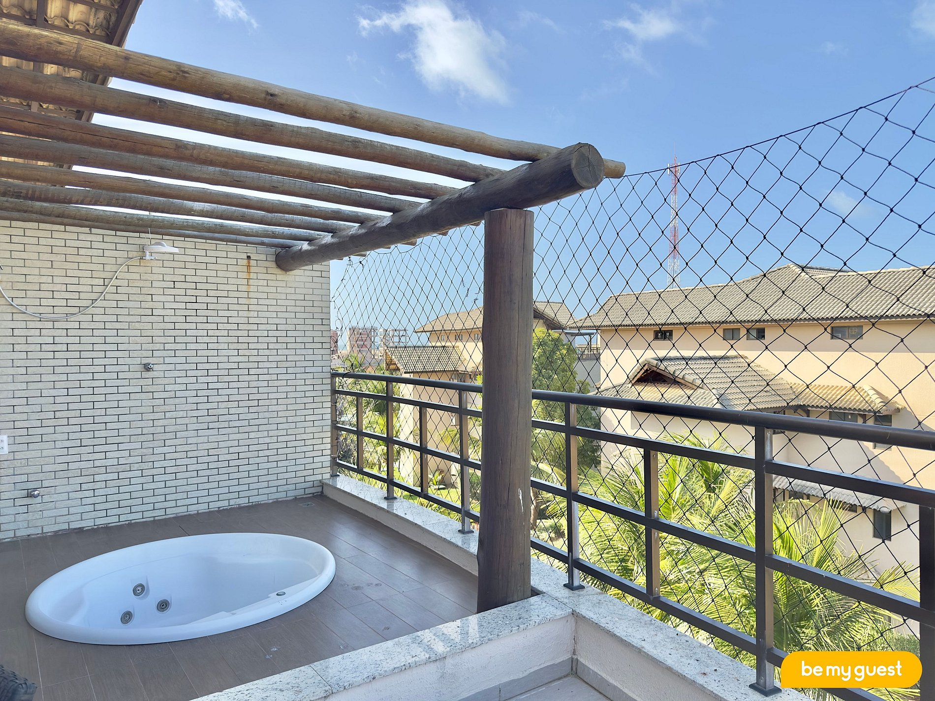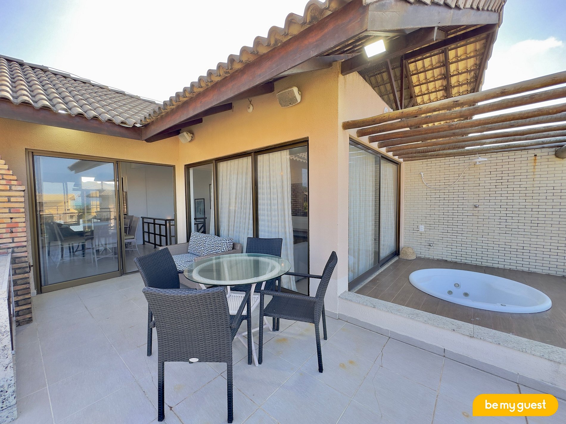 Cobertura exclusiva no Beach Place Resort, com jacuzzi privativa, varanda espaçosa e churrasqueira. São 3 suítes, sala aconchegante, cozinha completa e capacidade para até 8 pessoas.
