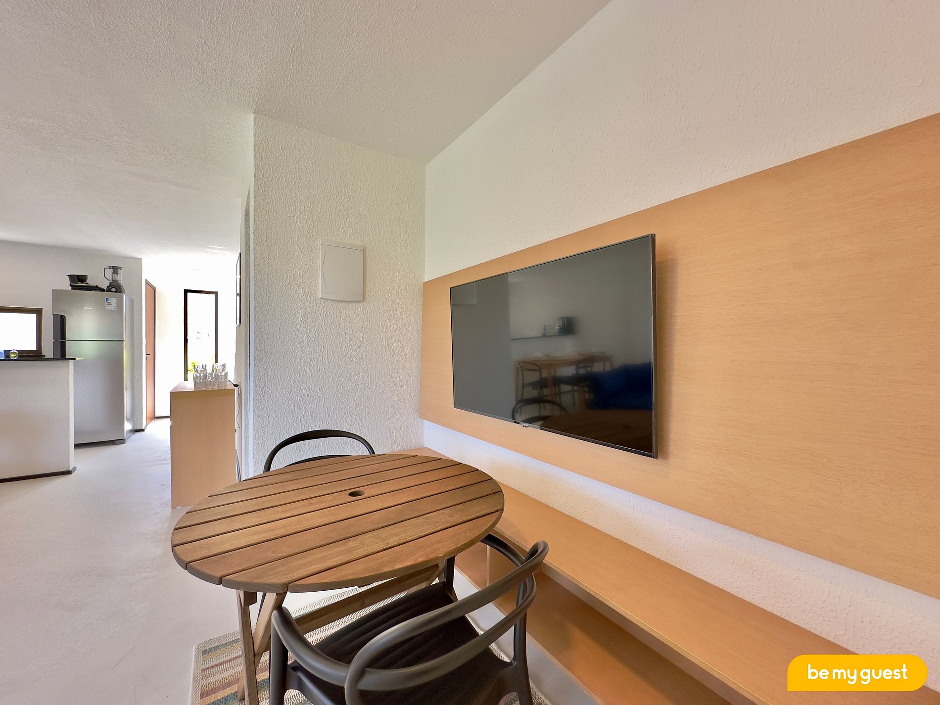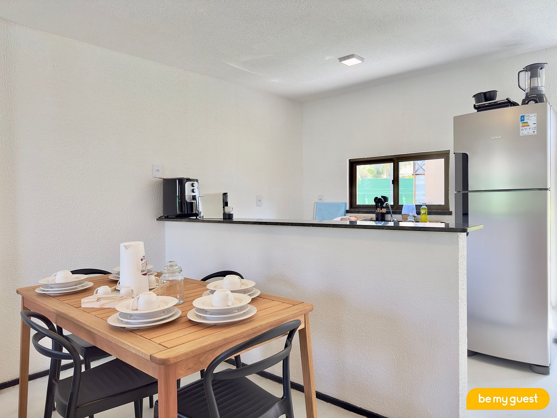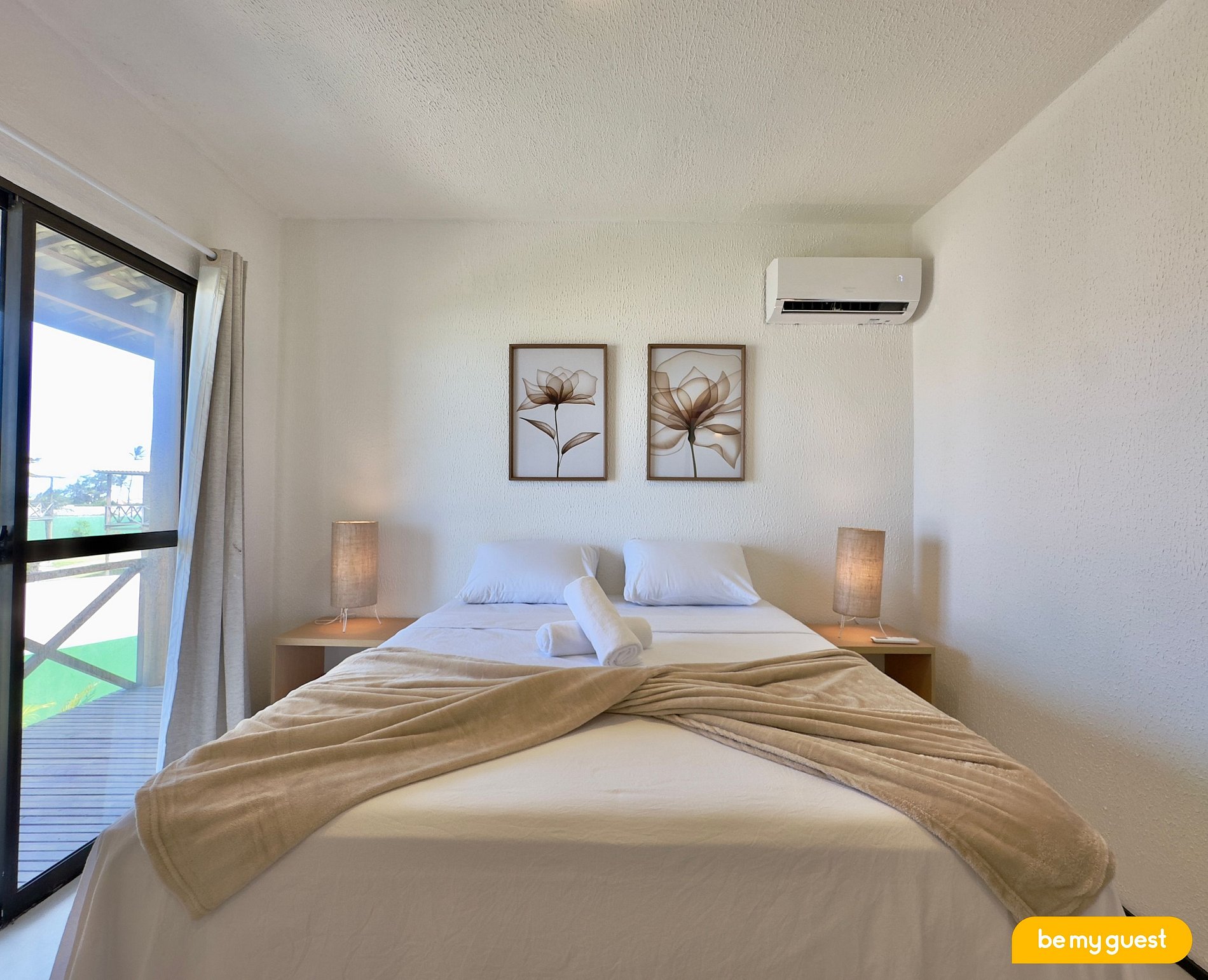 Charmoso duplex no Barro Preto com 2 suítes climatizadas, sala integrada à cozinha completa e piscina privativa. A acomodação fica pé na areia, com saída direta para o mar.