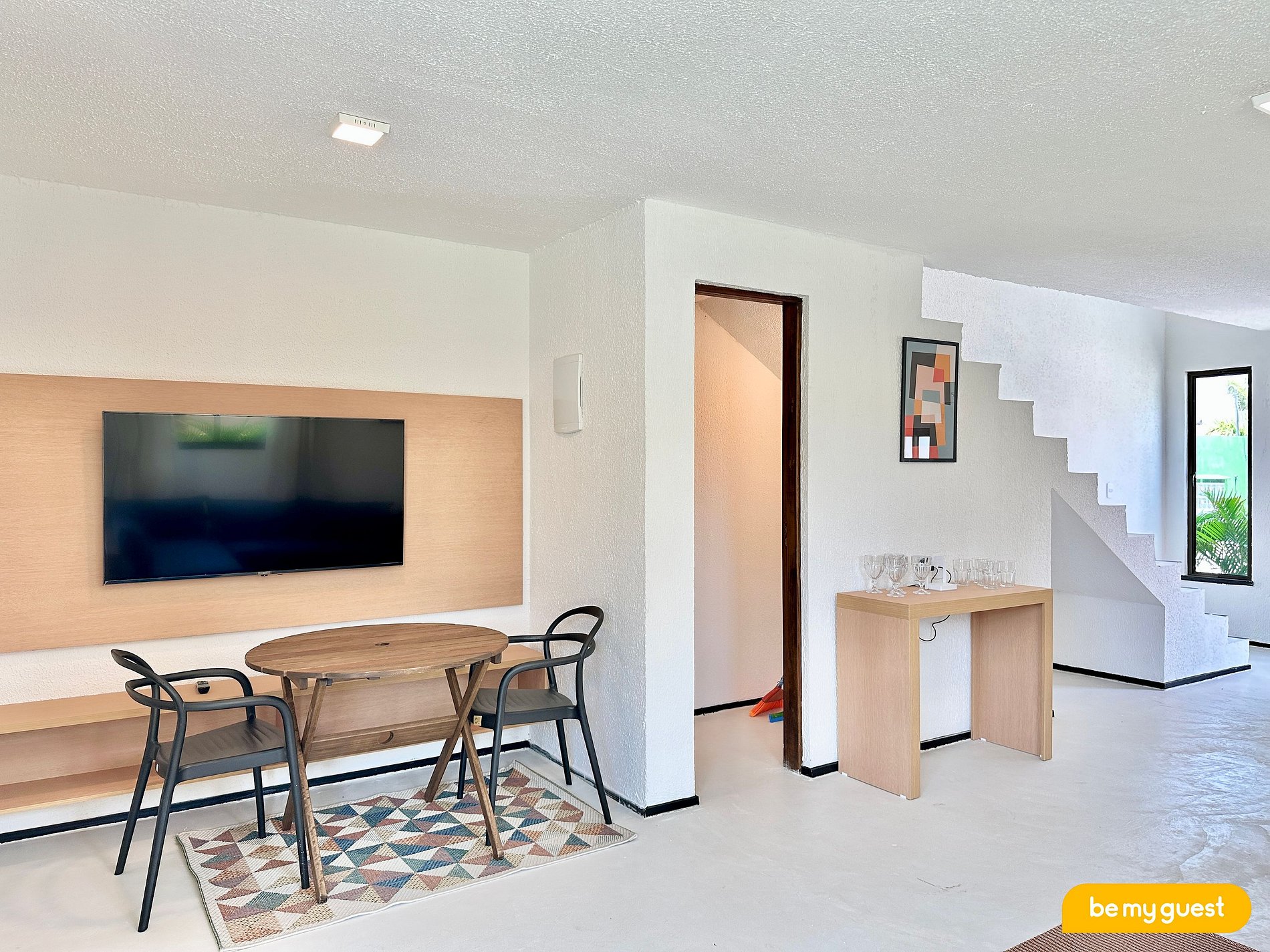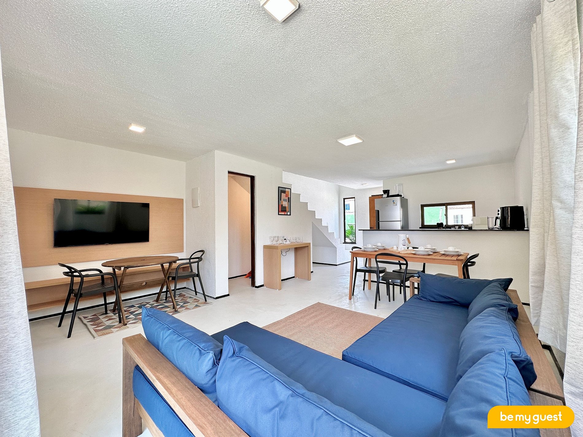 Ambiente moderno com 2 suítes completas, sala com cozinha integrada, piscina privativa e acesso direto à praia. Uma estadia prática e confortável.