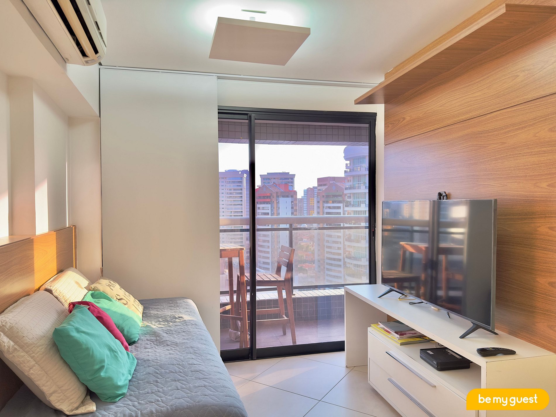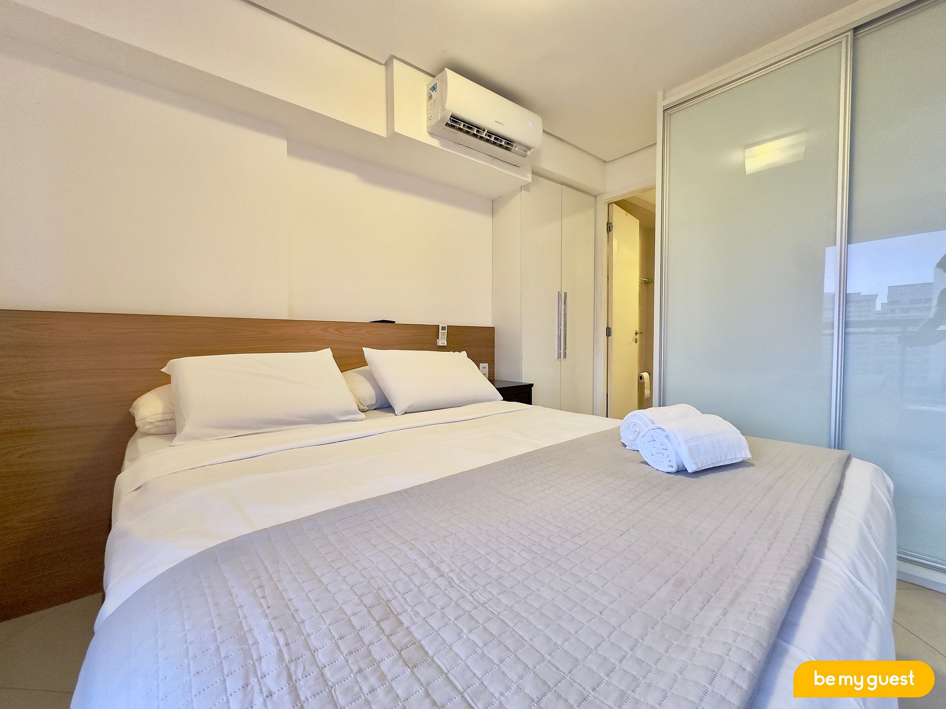 Apartamento moderno e climatizado no LandScape, ideal para até 4 pessoas. Conta com suíte, varanda em andar alto, mais silencioso e com vista panorâmica da cidade e estrutura completa para sua estadia.