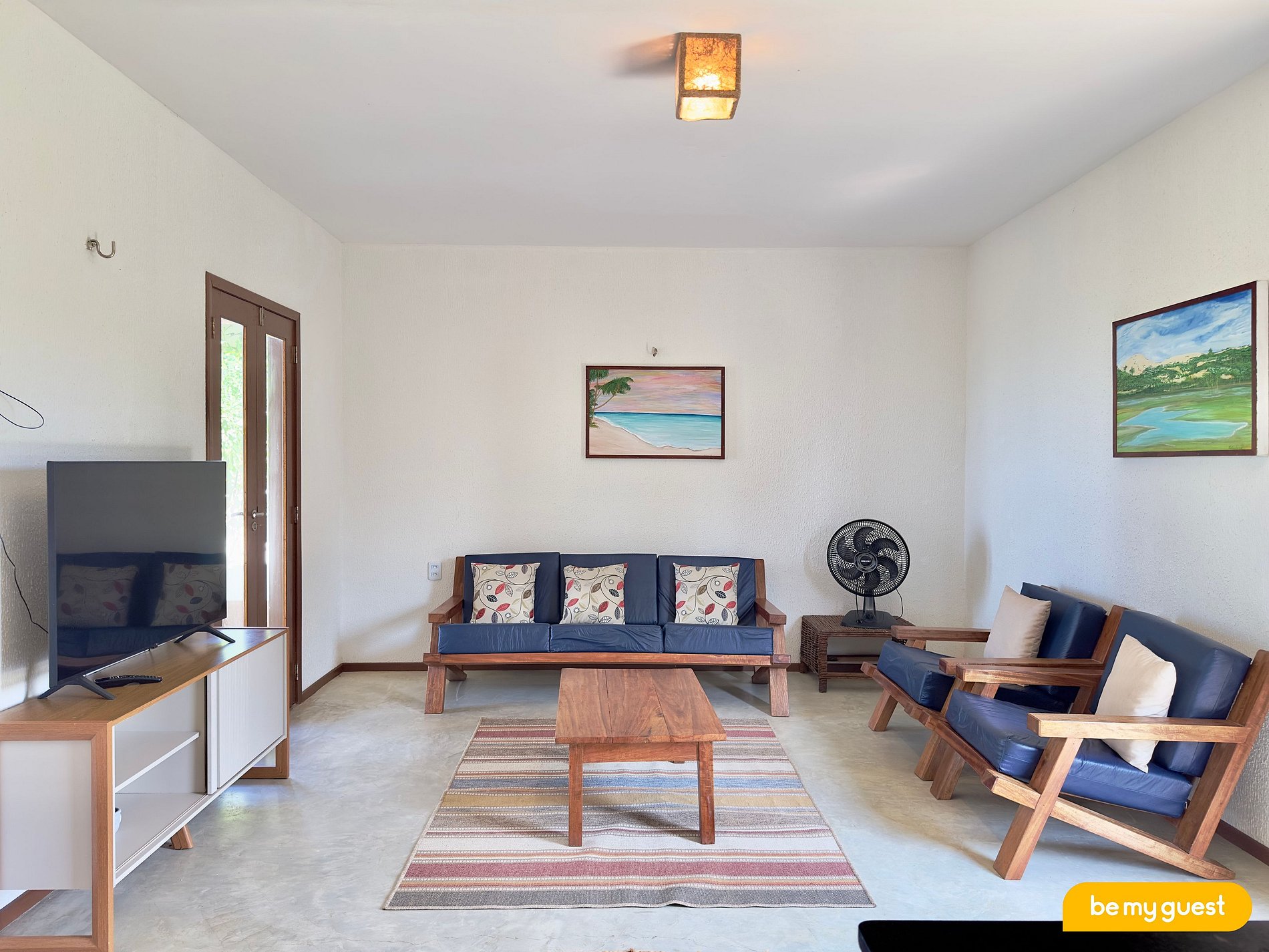 - Suíte principal com cama queen, TV Smart, ar-condicionado e vista para o mar