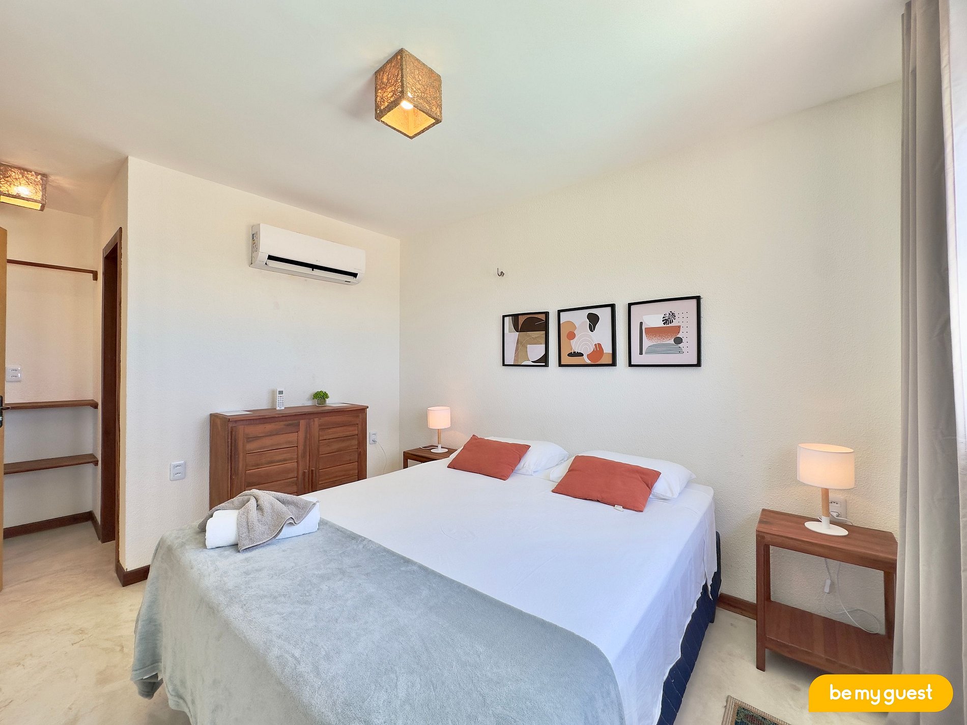 - Suíte super confortável, com cama queen, vista-mar e ar-condicionado