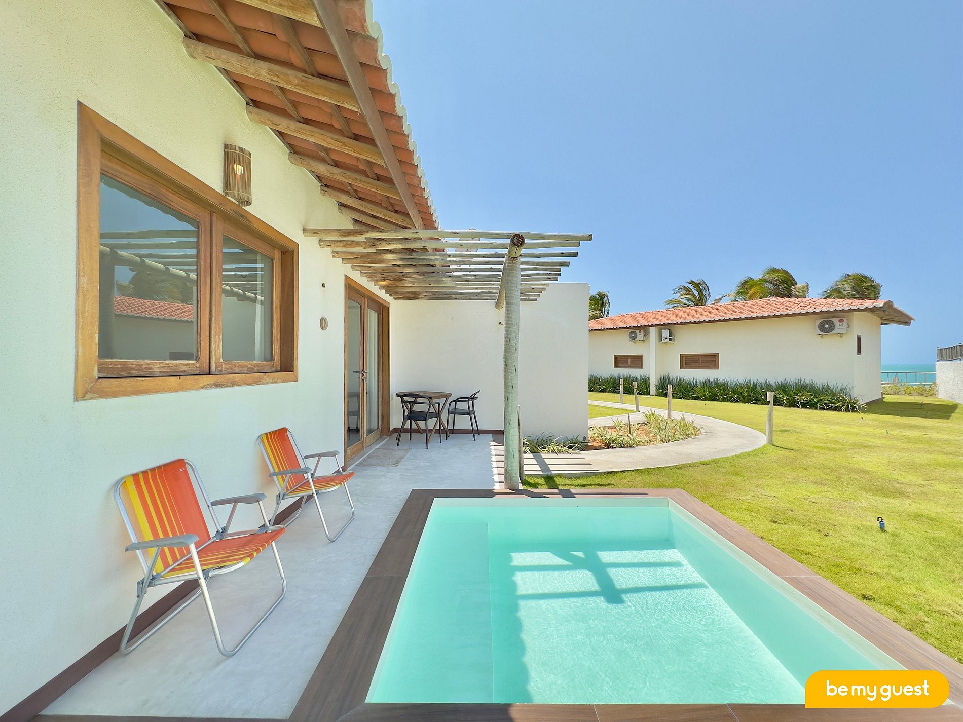 Cada chalé conta com piscina privativa, garantindo privacidade e conforto aos hóspedes. O espaço ainda dispõe de acesso direto à praia, mirante com vista panorâmica e áreas de estar ideais para relaxar e apreciar o pôr do sol.