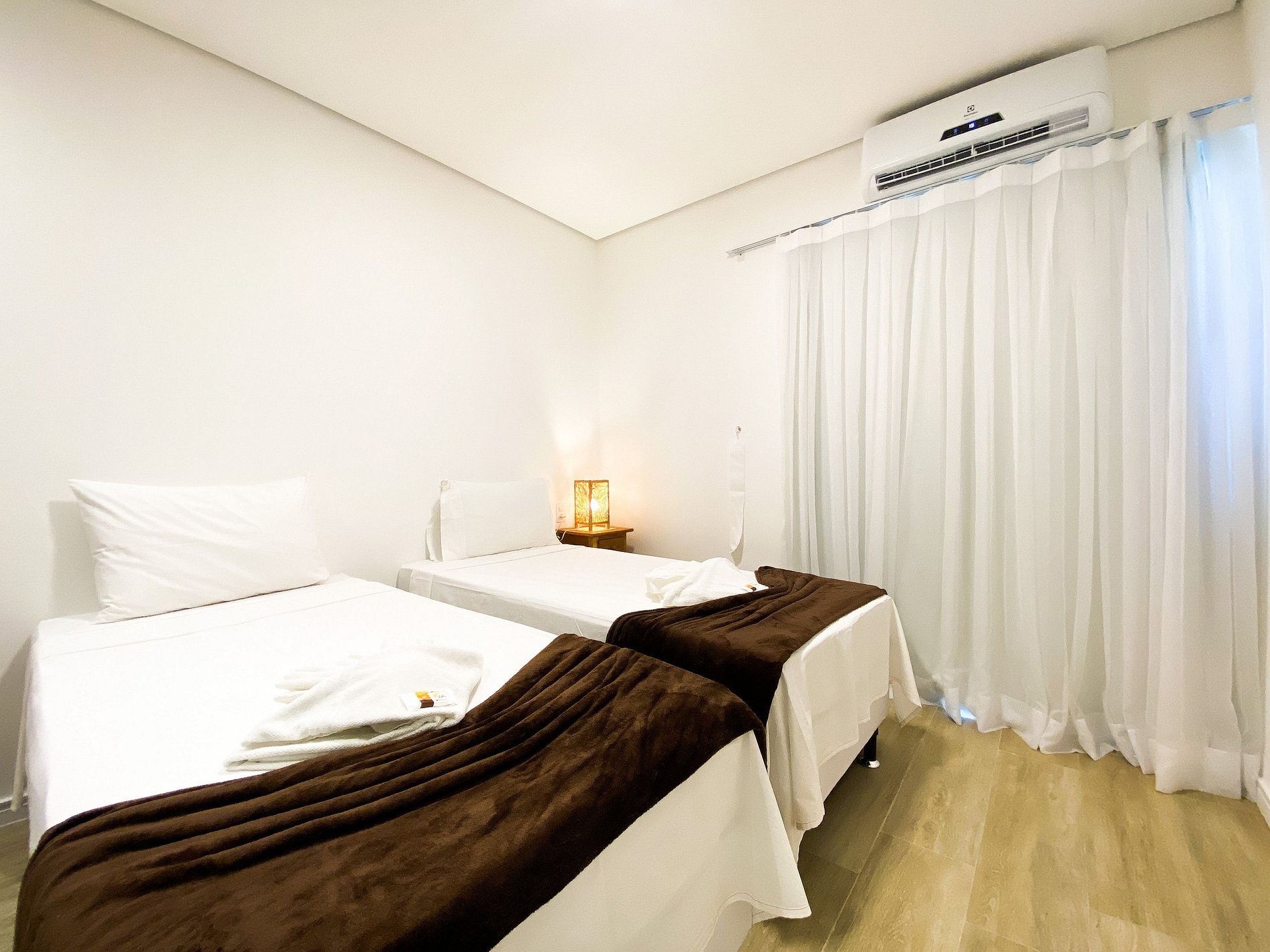 Adoramos nossa estadia ❤️ o espaço é maravilhoso e bem equipado, além do condomínio ser muito bonito e tranquilo!! Sempre que tivemos uma dúvida, fomos prontamente atendidos. O quarto tem duas camas de solteiro e dois colchões em baixo 🙏🏽 bem pertinho da praia e do centro de flecheiras