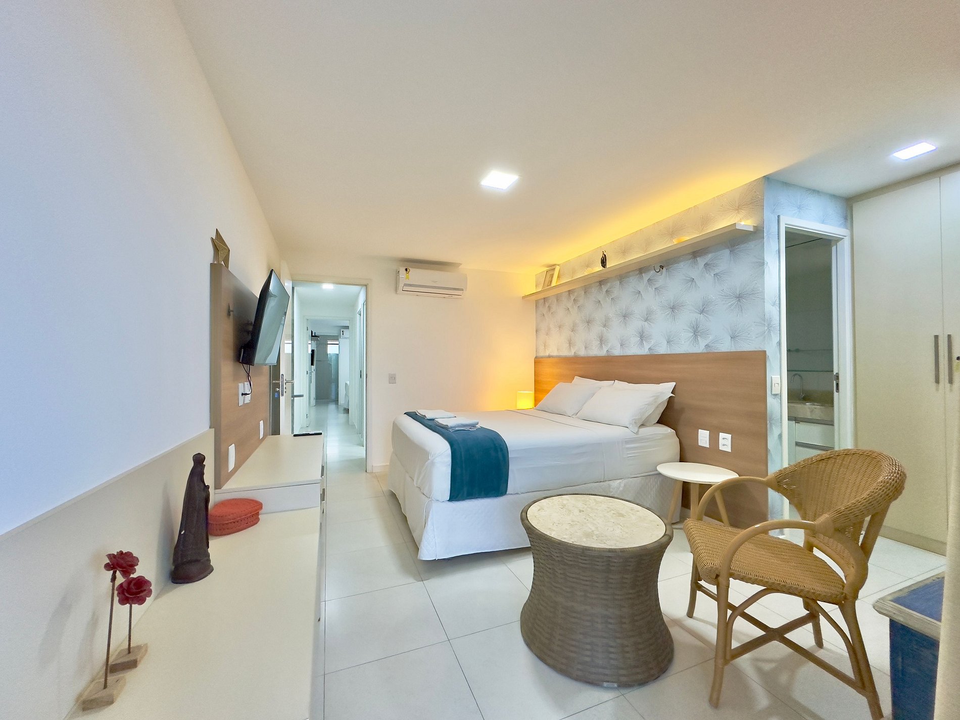 1 Suite com 1x Cama Queen + TV Smart e é conectada a varanda