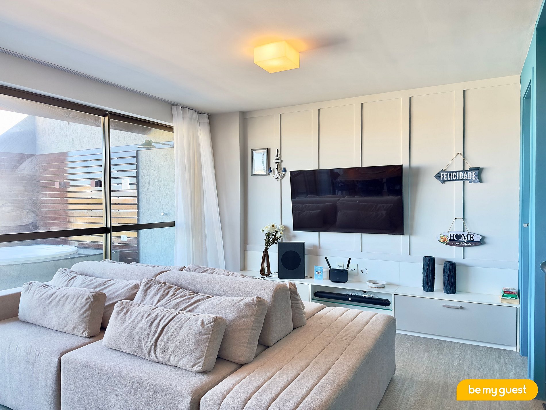 Cobertura sensacional no condomínio Mediterranee Residence no Porto das Dunas ao lado do Beach Park! Nessa acomodação você vai encontrar um apartamento completo com 3 suítes, sala de estar super bem decorada e conectada com uma varanda na cobertura com banheira privativa e churrasqueira gourmet.