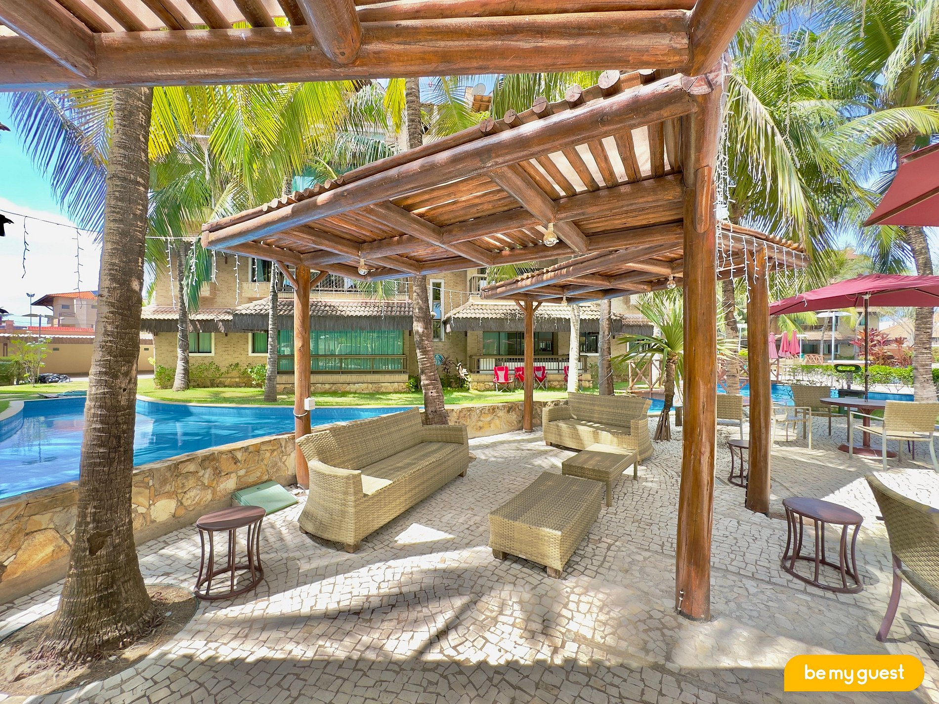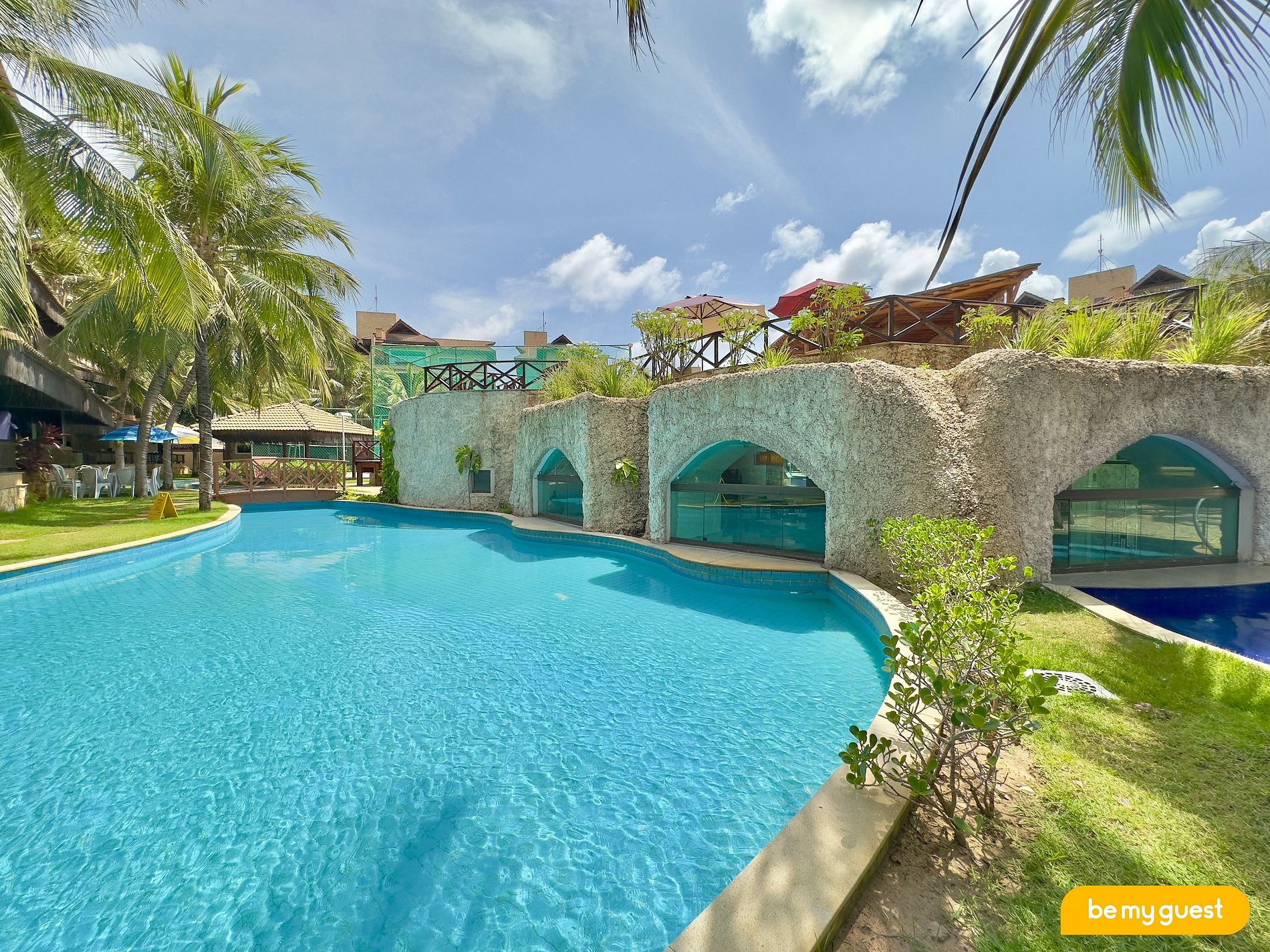- Varanda superior com churrasqueira completa e banheira exclusiva, além de uma bela vista do resort