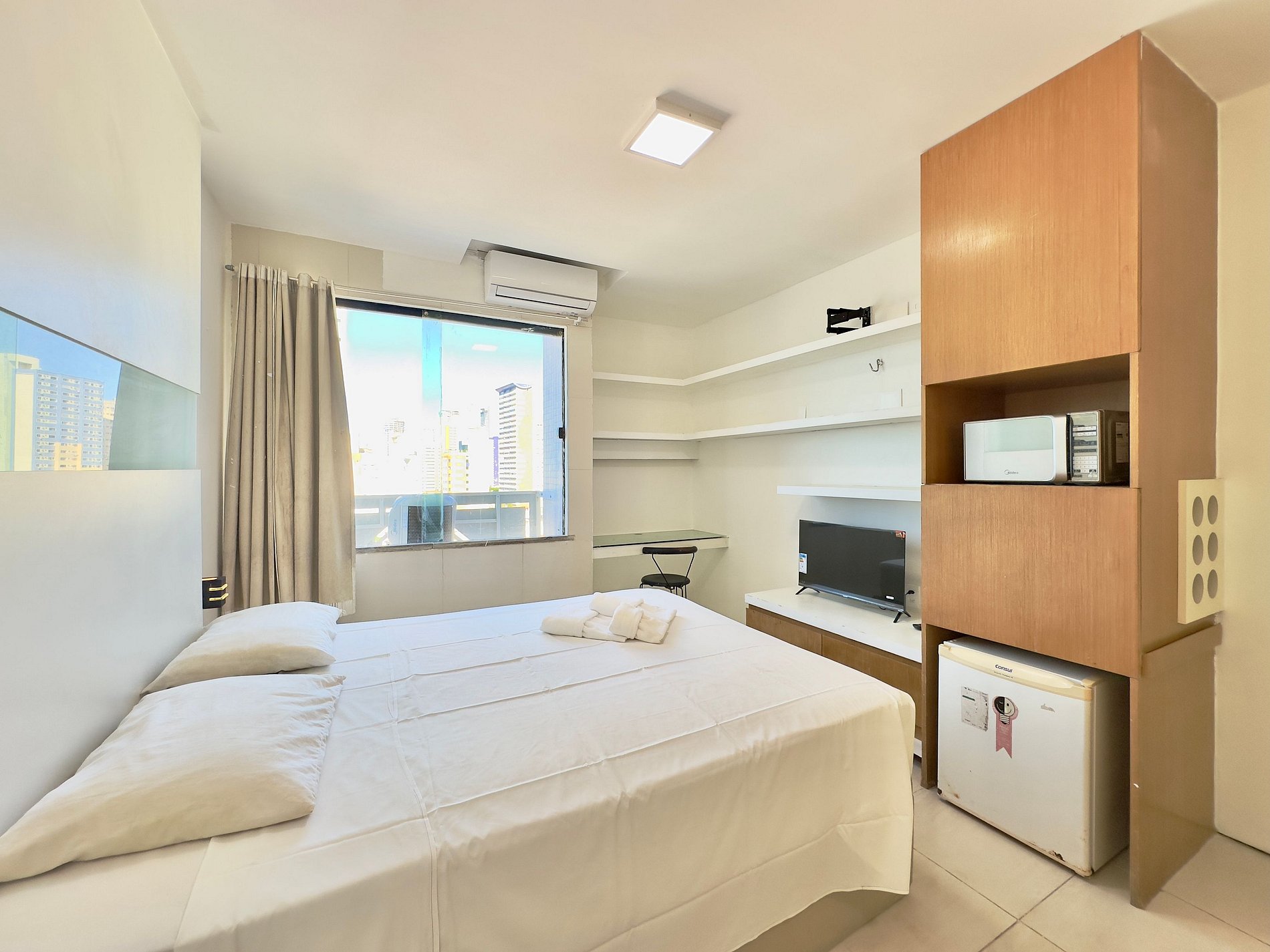 Apartamento tipo flat, equipado e com excelente localização, ideal para quem busca conforto sem abrir mão de praticidade na Praia de Iracema. O apto acomoda até 2 pessoas com conforto em um espaço elegante, climatizado e funcional. Além disso, o condomínio oferece área de lazer com piscina frente mar, garantindo uma estadia completa em Fortaleza.