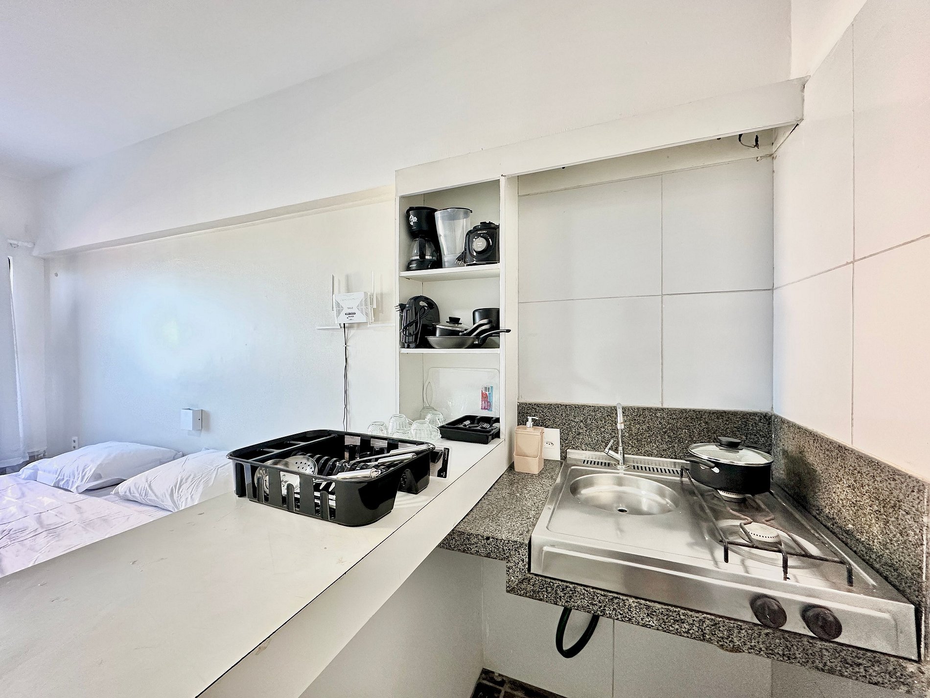 Apartamento compacto e confortável, bem equipado e em localização privilegiada, ideal para quem deseja curtir a Praia de Iracema com comodidade. O apartamento conta com quarto e cozinha integrados, sendo uma excelente opção para até 2 pessoas. Aproveite uma estadia prática e relaxante com acesso rápido à praia e uma charmosa área de lazer com piscina de frente para o mar.