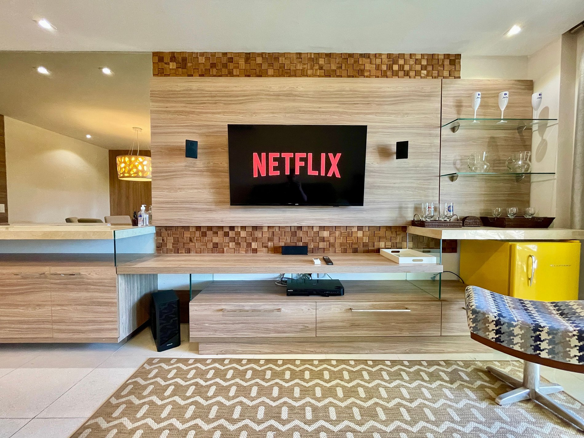 > Sala de Estar completa, super bem decorada com móveis excelentes, com ar-condicionado e TV Smart moderna.