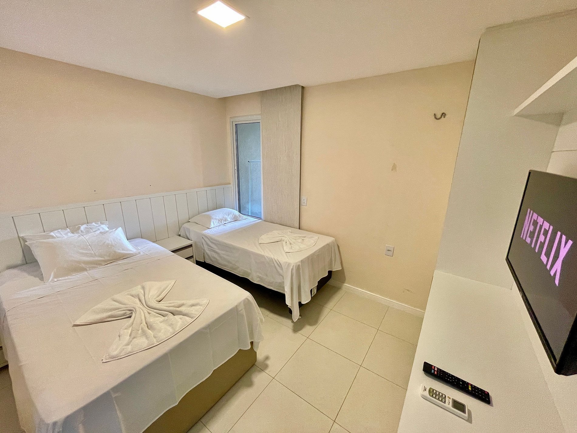 > Segunda Suíte com 2 camas de Solteiro (uma delas tipo "Solteirão" ) + ar-condicionado + TV Smart grande