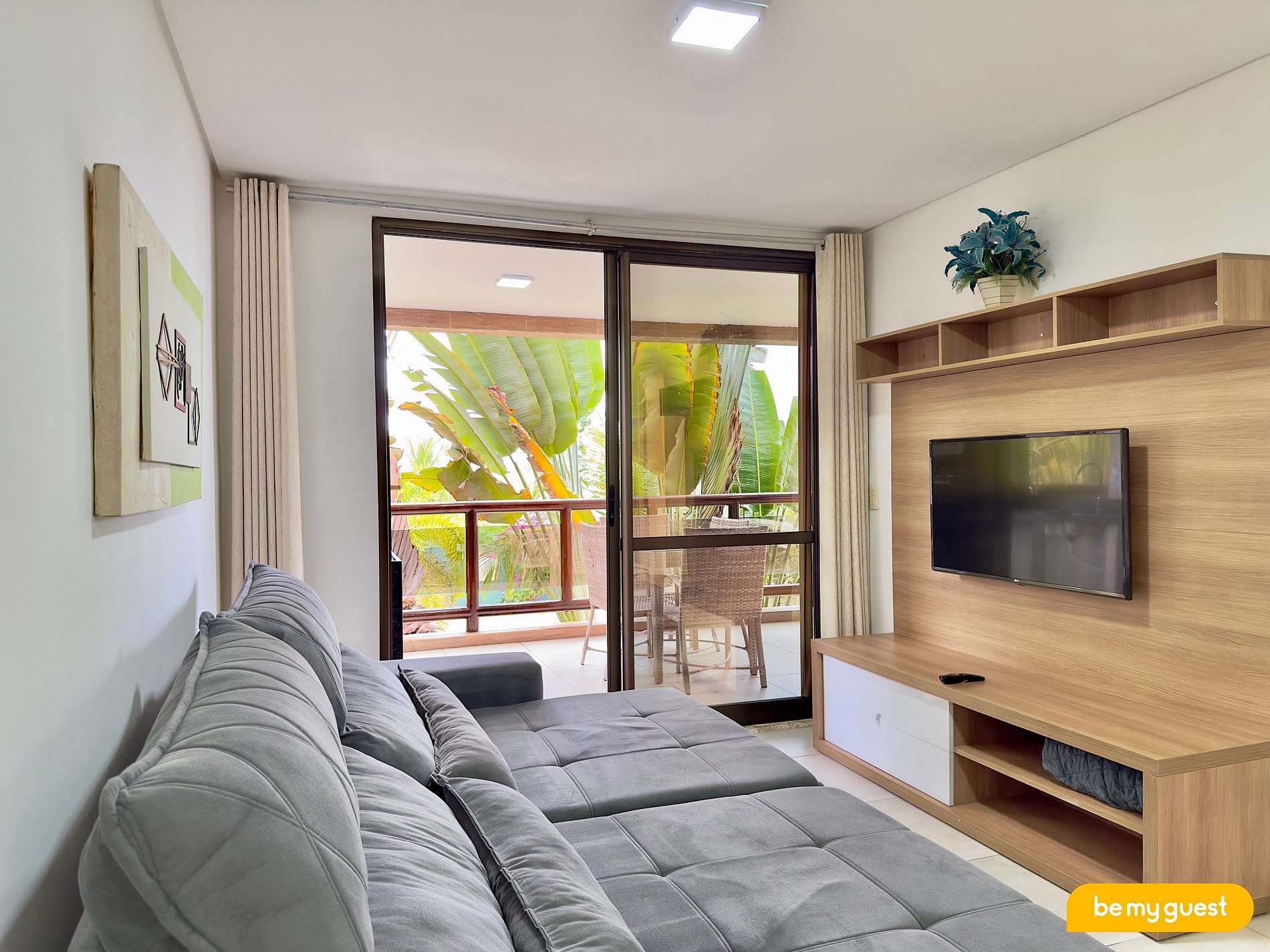 - Sala de estar ampla, confortável, com sofá espaçoso e TV Smart